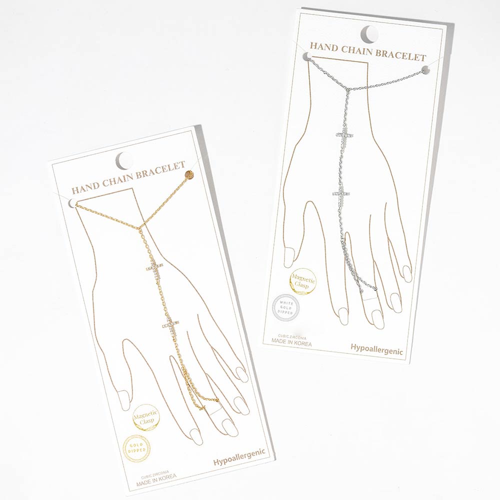 • This elegant hand chain bracelet features a refined cross accent with a connected wrist-to-finger design for a modern, graceful statement. Designed with a convenient magnetic clasp for easy wear, it delivers a sleek layered look that elevates everyday outfits, evening styles, and boutique jewelry collections. Ideal for customers seeking meaningful yet fashion-forward hand jewelry.