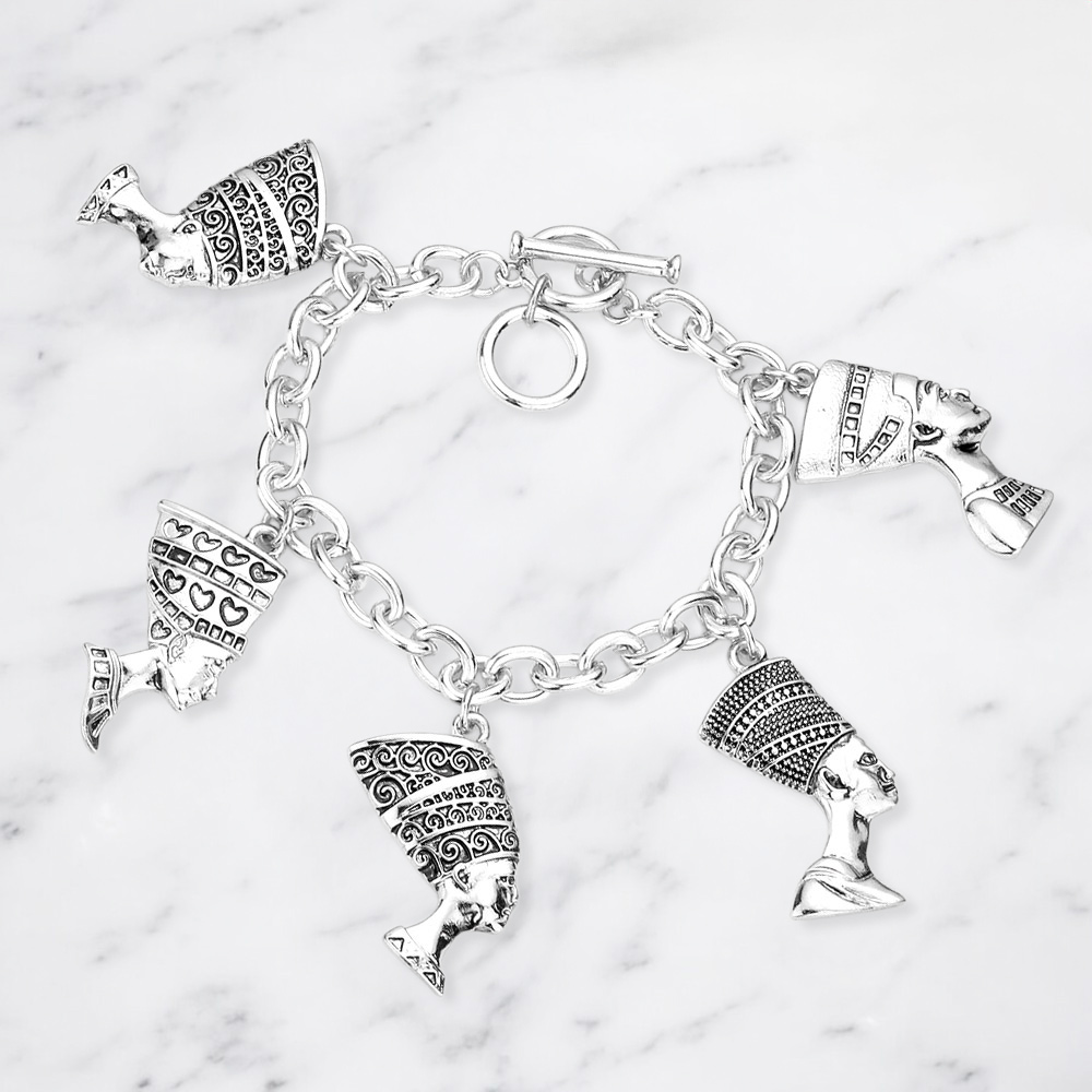 Antique Metal Cleopatra Charm Station Toggle Bracelet