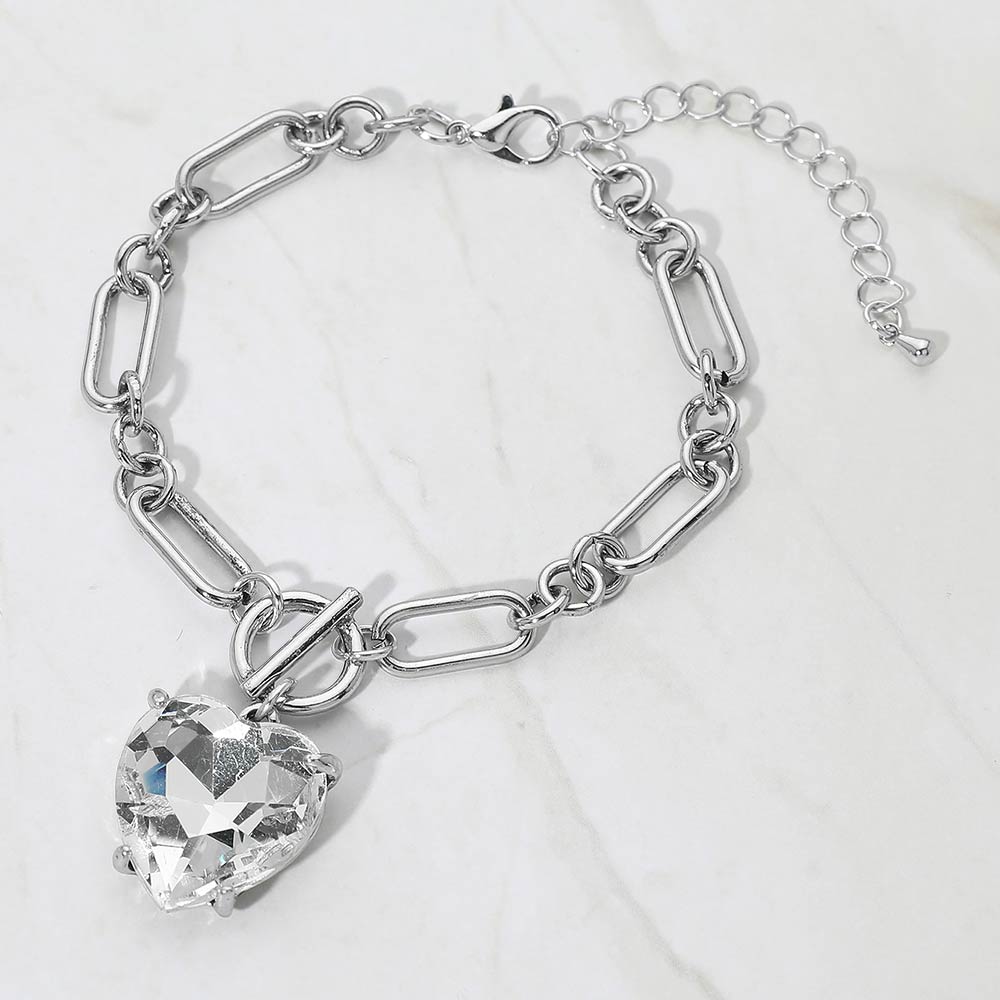 • This paperclip chain bracelet features a bold heart charm accent that creates a striking focal point on a modern, structured silhouette. Designed with an adjustable length for a comfortable fit, it layers easily or stands out worn alone. A stylish statement piece ideal for everyday wear, gifting, or adding a romantic touch to casual and dress-ready looks.