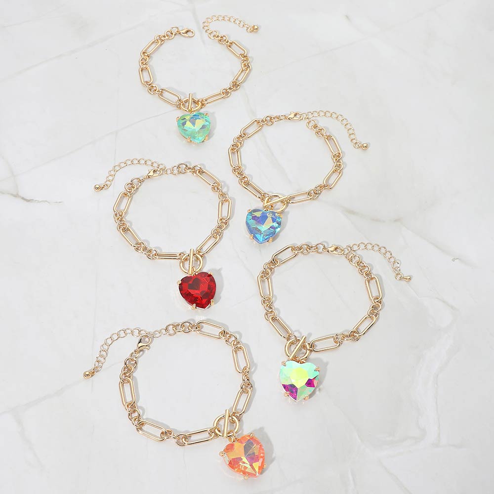 Chunky Heart Stone Cluster Toggle Charm Bracelet Chunky Heart Stone Cluster Toggle Charm Bracelet Chunky Heart Stone Cluster Toggle Charm Bracelet