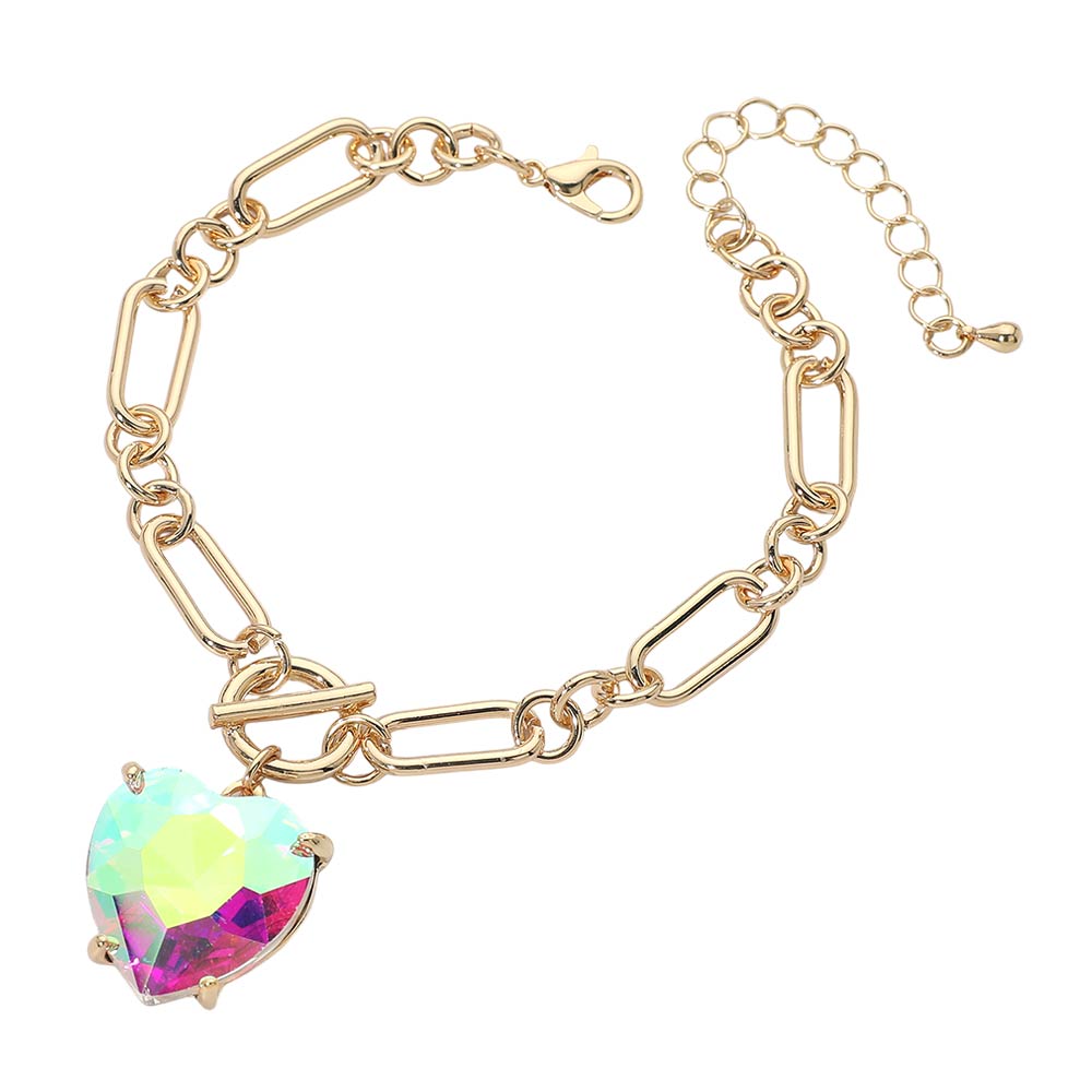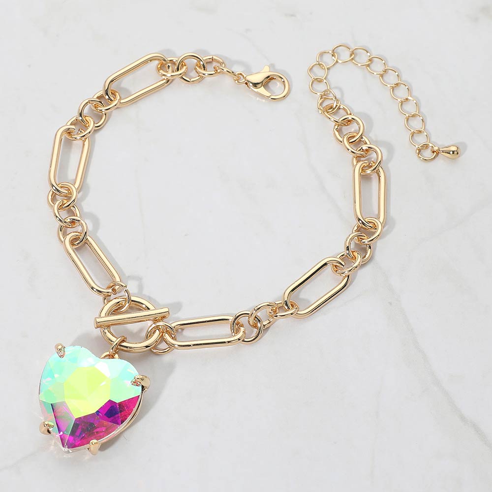Chunky Heart Stone Cluster Toggle Charm Bracelet