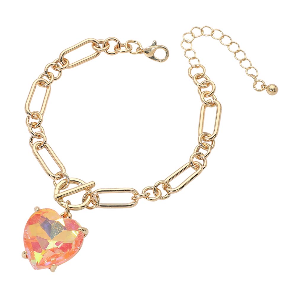 Chunky Heart Stone Cluster Toggle Charm Bracelet