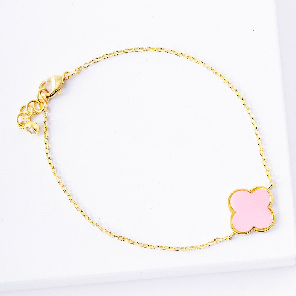 Gold Dipped Mother of Pearl Quatrefoil Charm Bracelet