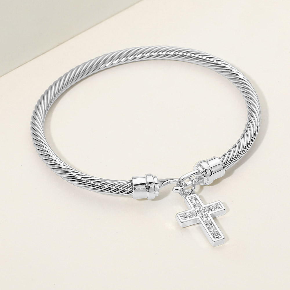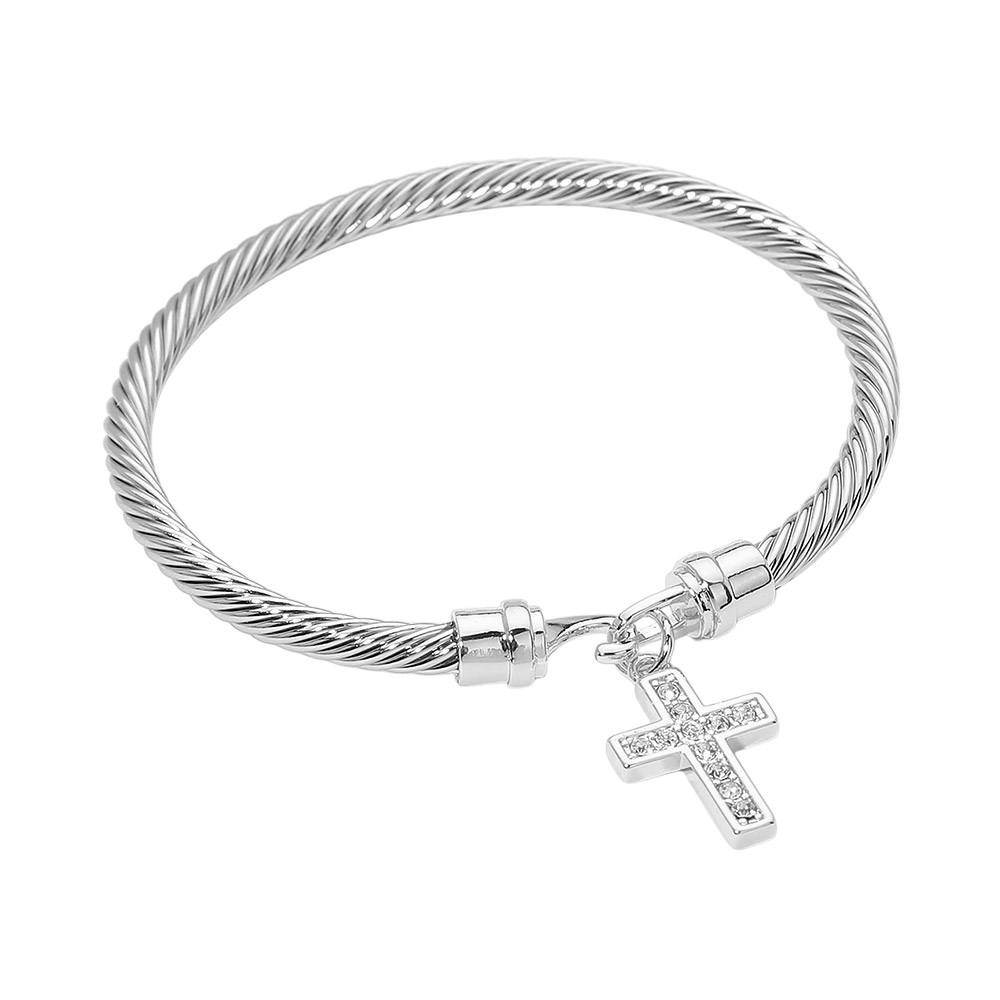 Details • Size : 0.2" H, 2.25" D • Charm Size : 0.75" L • Hook Closure • This cross charm cable style bracelet features a clean, structured silhouette paired with a symbolic dangling cross for a meaningful accent. Designed for everyday wear or special occasions, it offers a secure fit and refined look that works well for gifting, faith-inspired collections, layering, or boutique jewelry assortments seeking timeless appeal. • CZ Cubic Zirconia
