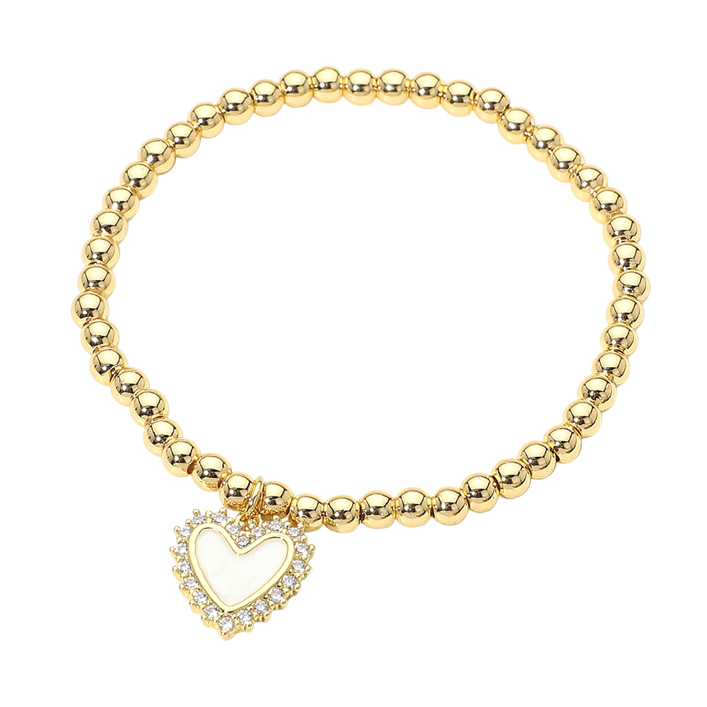 Stainless Steel CZ Trim Mother of Pearl Heart Charm Beaded Stretch Bracelet Stainless Steel CZ Trim Mother of Pearl Heart Charm Beaded Stretch Bracelet Stainless Steel CZ Trim Mother of Pearl Heart Charm Beaded Stretch Bracelet Stainless Steel CZ Trim Mother of Pearl Heart Charm Beaded Stretch Bracelet
