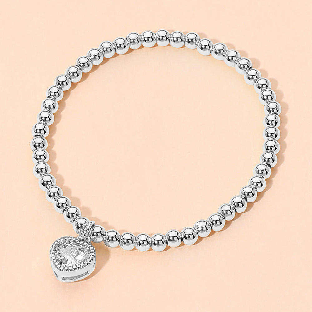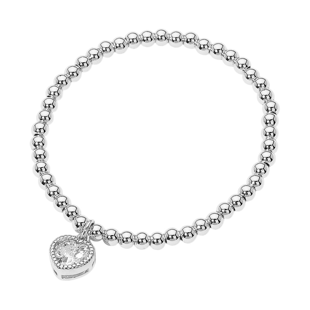 Stainless Steel Heart Charm Beaded Stretch Bracelet Stainless Steel Heart Charm Beaded Stretch Bracelet