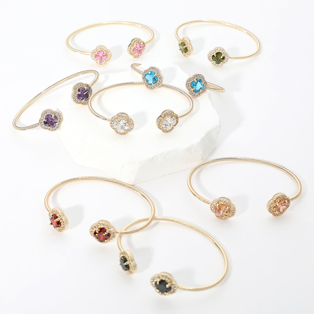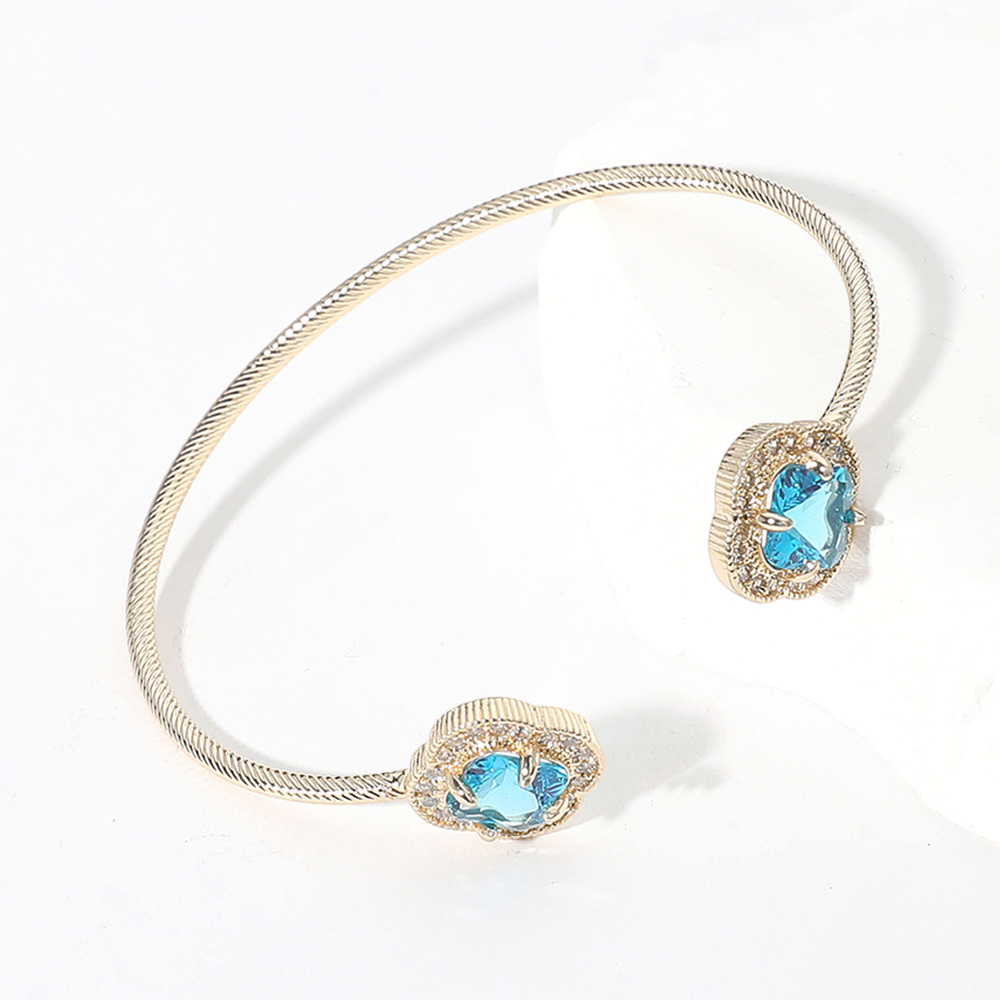 Details • Size : 0.7" H, 2.4" D • Cuff • Stylish open-cuff bracelet featuring two sparkling gem accents on each end, designed with a sleek band that adds a touch of sophistication. A refined accessory that enhances everyday outfits or special occasions with subtle shine and modern charm. • CZ Cubic Zirconia