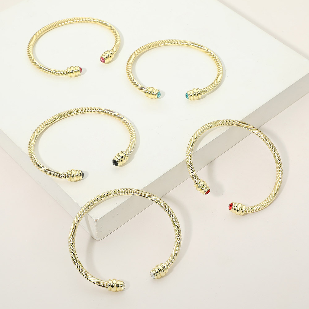 14K Gold Plated CZ Stone Tip Twisted Cable Cuff Bracelet