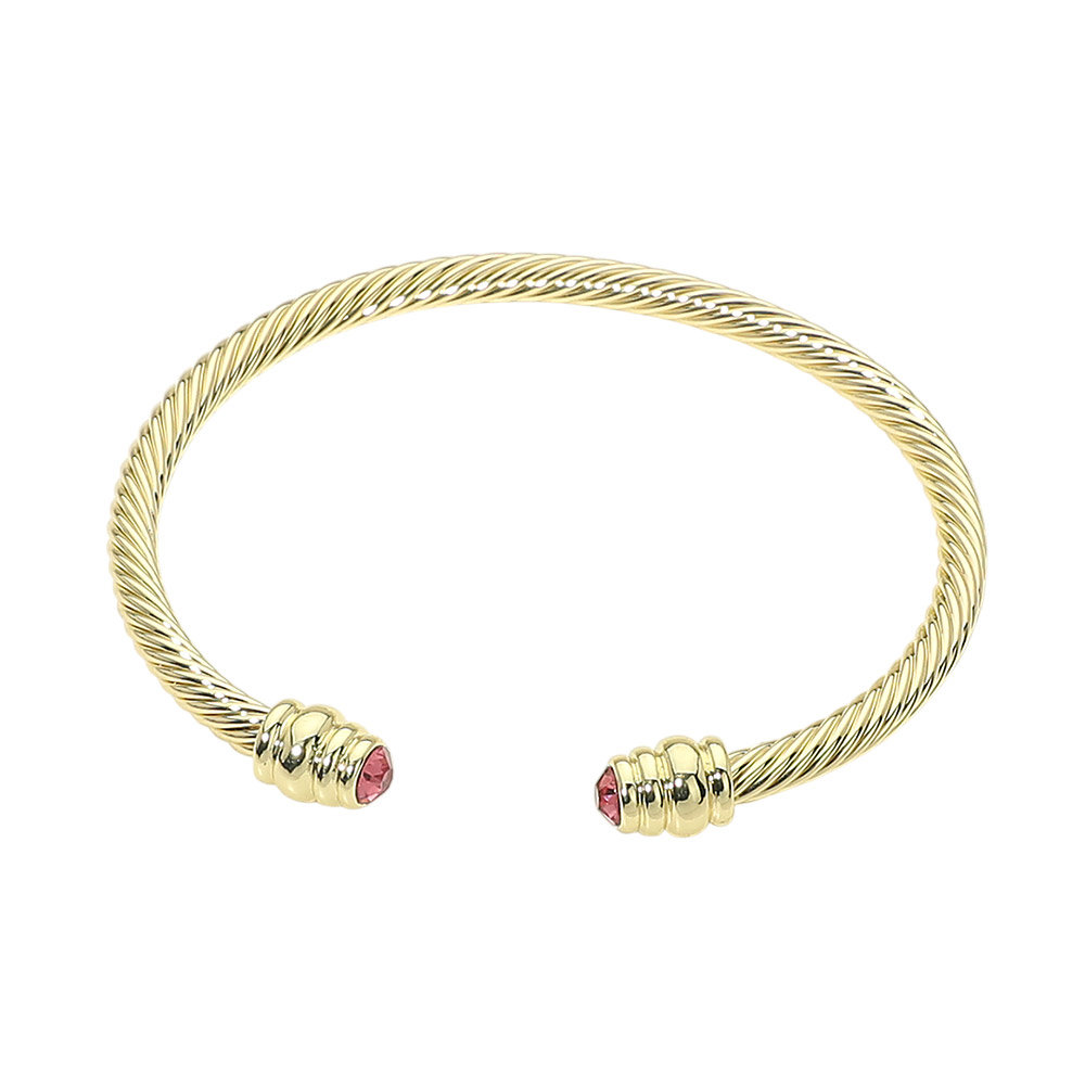14K Gold Plated CZ Stone Tip Twisted Cable Cuff Bracelet
