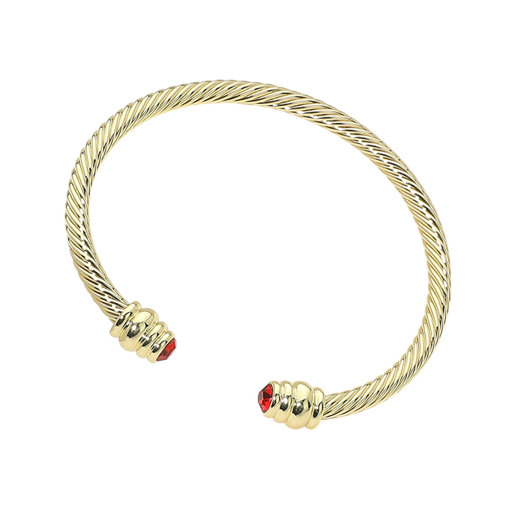 14K Gold Plated CZ Stone Tip Twisted Cable Cuff Bracelet