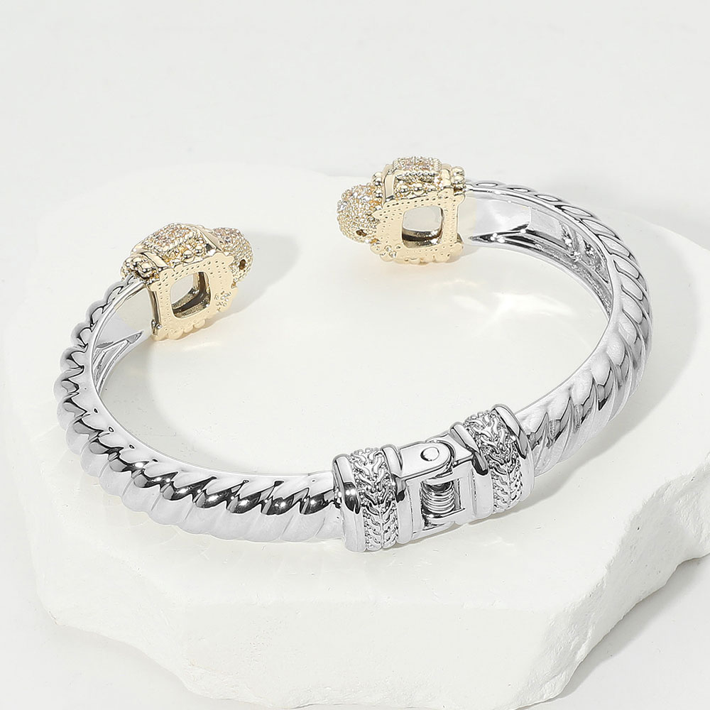 14K Gold Plated CZ Stone Tip Two Tone Twisted Hinge Cuff Bracelet 14K Gold Plated CZ Stone Tip Two Tone Twisted Hinge Cuff Bracelet 14K Gold Plated CZ Stone Tip Two Tone Twisted Hinge Cuff Bracelet 14K Gold Plated CZ Stone Tip Two Tone Twisted Hinge Cuff Bracelet