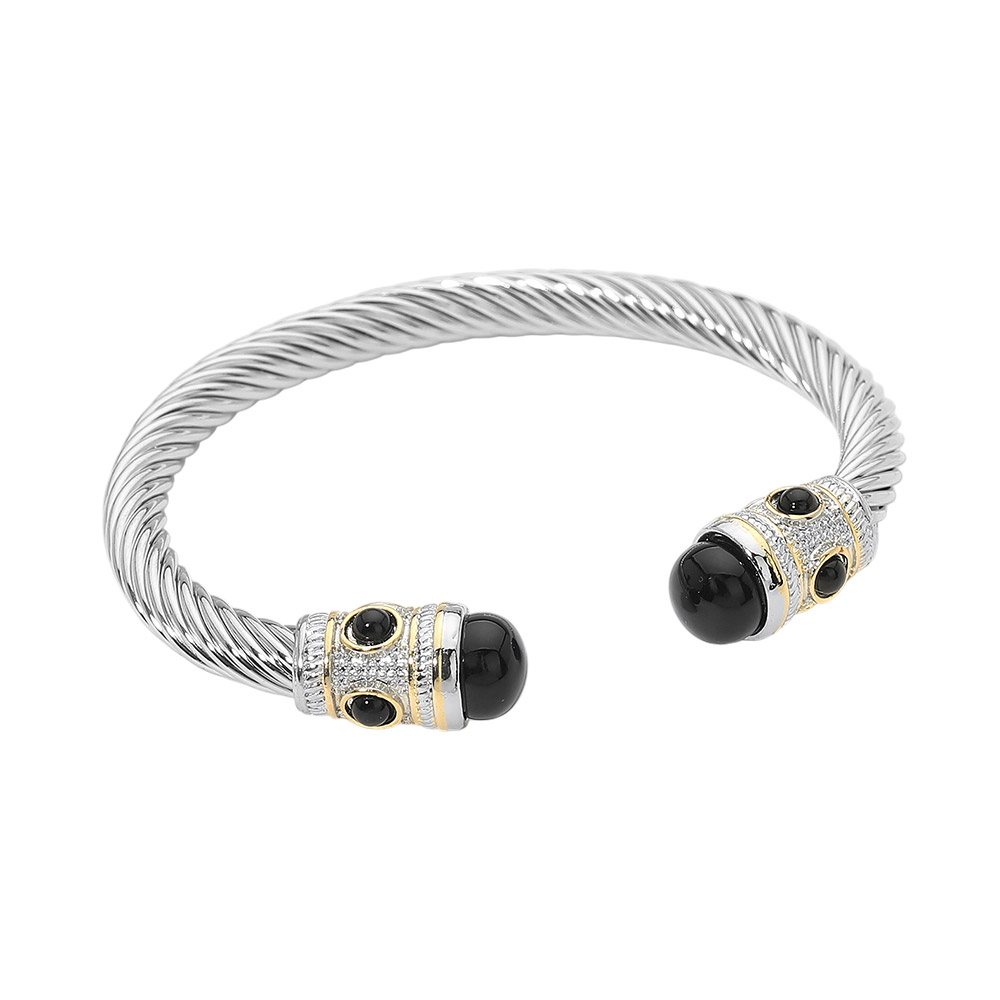 • Modern open cuff bracelet designed with a sleek twisted cable silhouette and refined stone-accented end caps. Easy to slip on and style, this bracelet adds a bold yet polished touch to everyday outfits, special occasions, or layered wrist looks, making it a versatile choice for gifting and fashion-forward collections.
