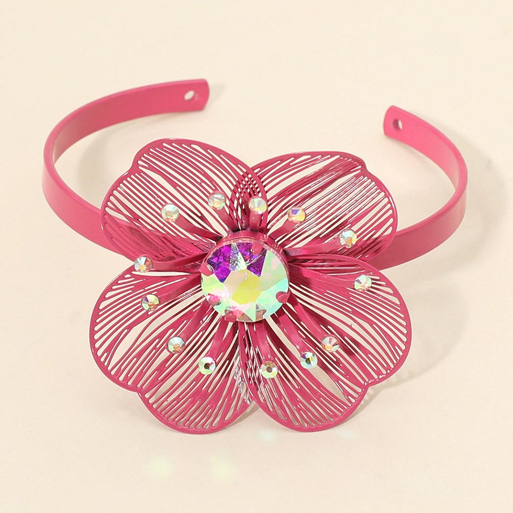 • Statement cuff bracelet featuring a bold floral design with a faceted center accent and delicate crystal details. Designed to stand out with sculptural petals and eye-catching shine, this cuff adds artistic flair and elegant impact to everyday outfits or special occasion styling.