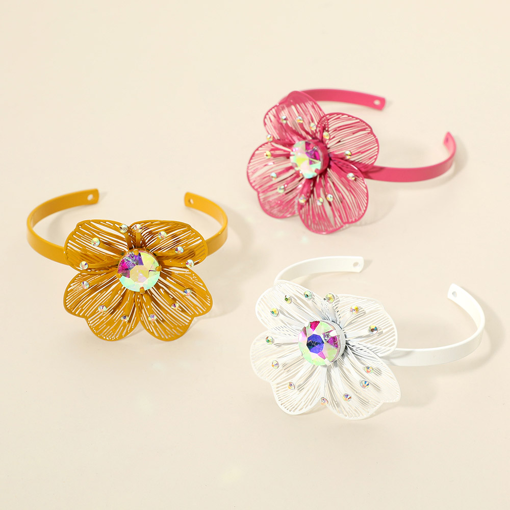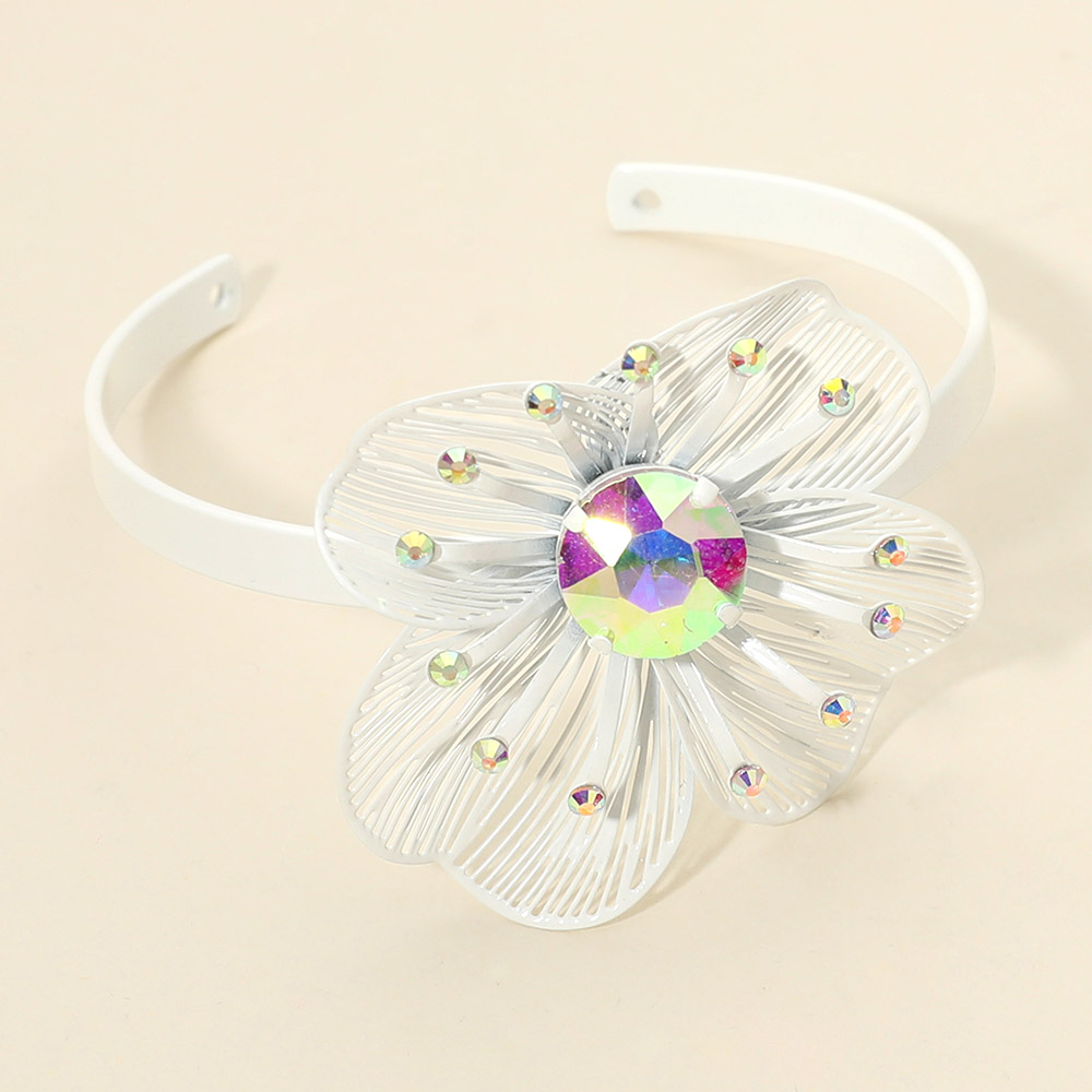 Details • Size : 1.5" H, 2.3" D • Cuff • Statement cuff bracelet featuring a bold floral design with a faceted center accent and delicate crystal details. Designed to stand out with sculptural petals and eye-catching shine, this cuff adds artistic flair and elegant impact to everyday outfits or special occasion styling. • Lead and Nickel Compliant