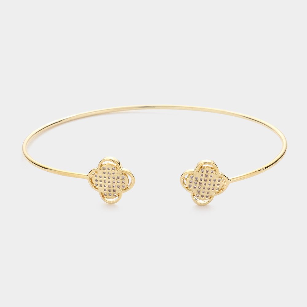 Brass Metal CZ Quatrefoil Tip Cuff Bracelet