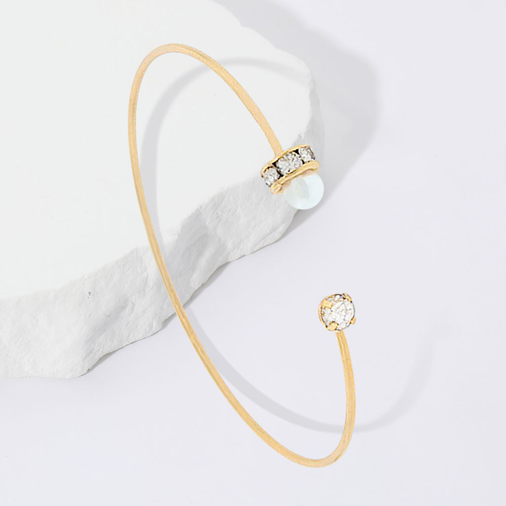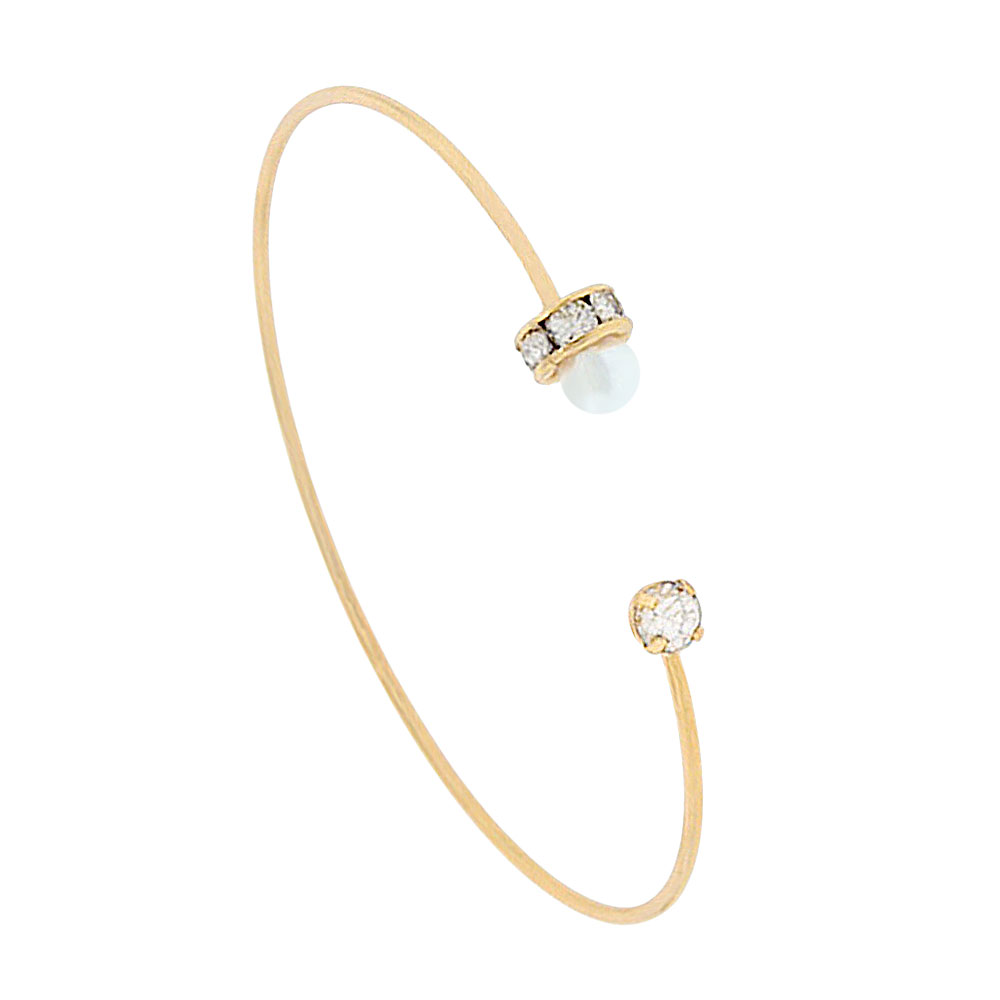 Details • Size : 0.3" H • Cuff • Discover timeless beauty with this open cuff bracelet featuring a refined pearl accent and sparkling crystal detailing. Lightweight and versatile, this bracelet is perfect for elevating both everyday style and special occasion looks with a touch of sophistication. • Lead and Nickel Compliant • Brass