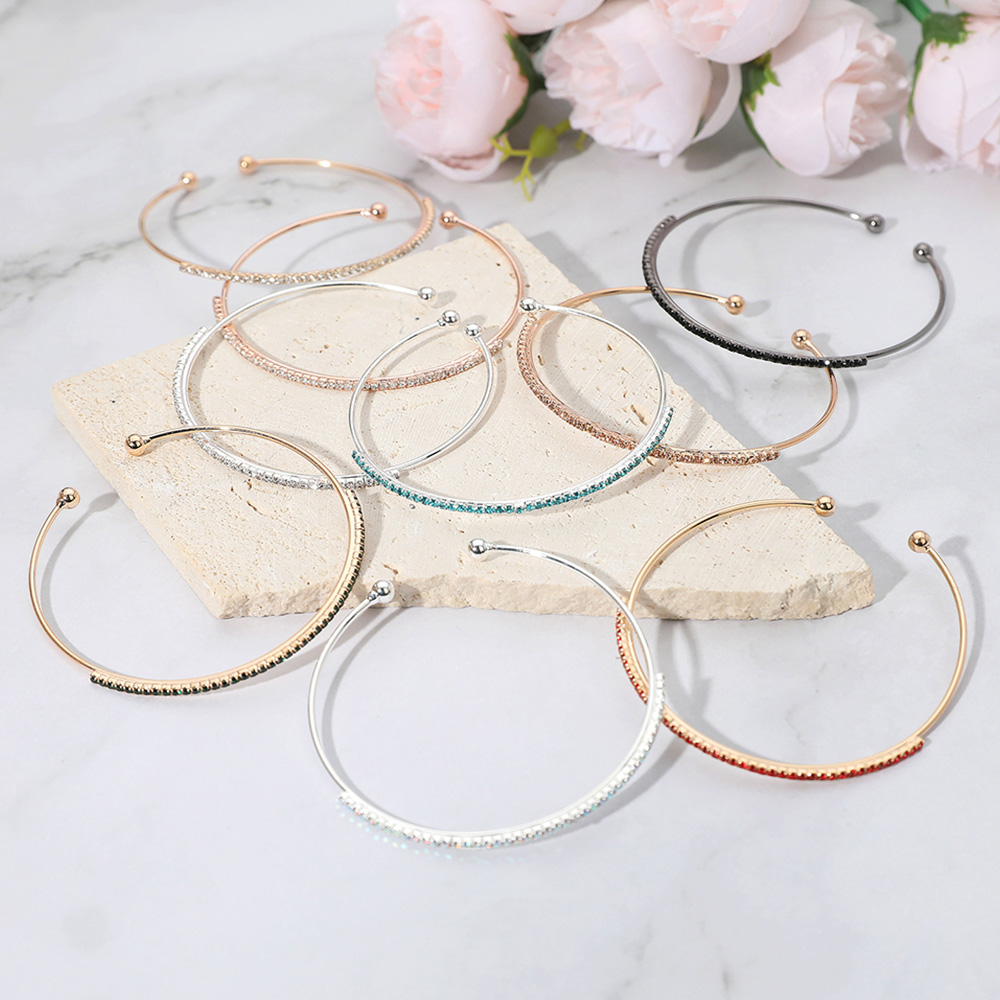 Details • Size : 0.1" H, 2.3" D • Cuff • Sleek and elegant cuff bracelet featuring a slim open bangle design adorned with shimmering cz crystals. Perfect for adding a subtle sparkle to any outfit, ideal for stacking or wearing alone for a refined look. • Lead and Nickel Compliant • CZ Cubic Zirconia