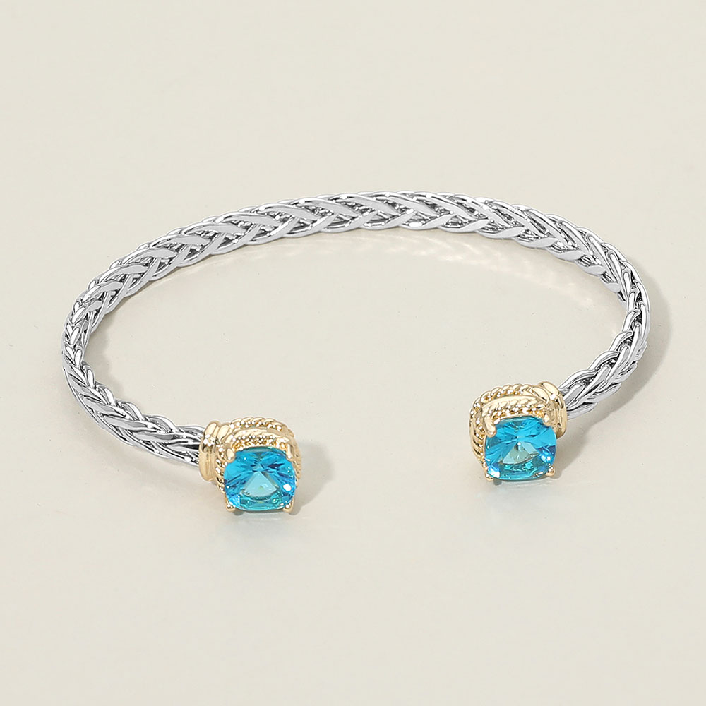 Details • Size : 0.4" H, 2.4" D • Cuff • Refined open cuff bracelet featuring a braided band and square crystal end details. Designed with a structured silhouette and elegant sparkle, this versatile accessory pairs effortlessly with casual or dress looks and layers beautifully with other bracelets for curated styling. • CZ Cubic Zirconia