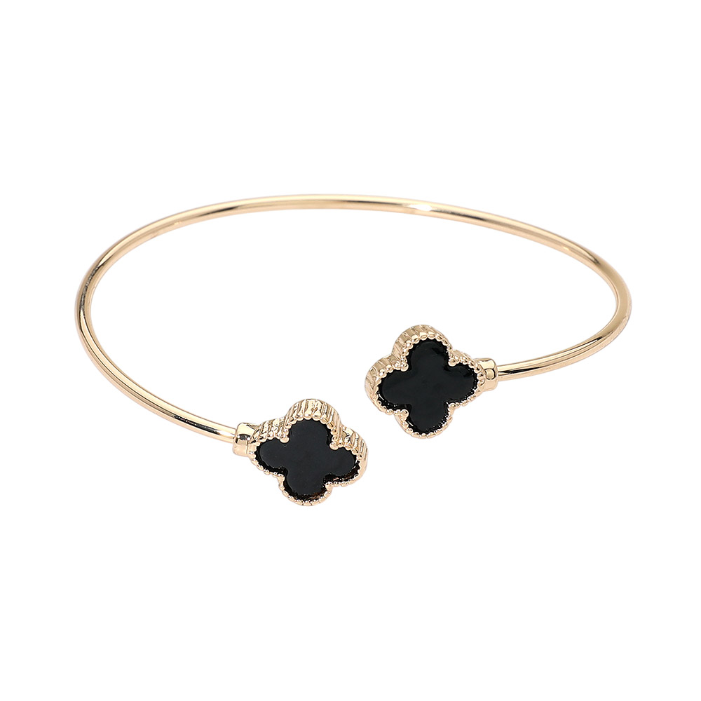 • Elegant open cuff bracelet featuring dual quatrefoil-shaped accents with a polished outline and smooth inlay finish. Designed for easy wear and a refined statement, this versatile piece complements everyday outfits, office looks, and special occasions. Ideal for gifting, boutique collections, or customers seeking a timeless symbol-inspired accessory.