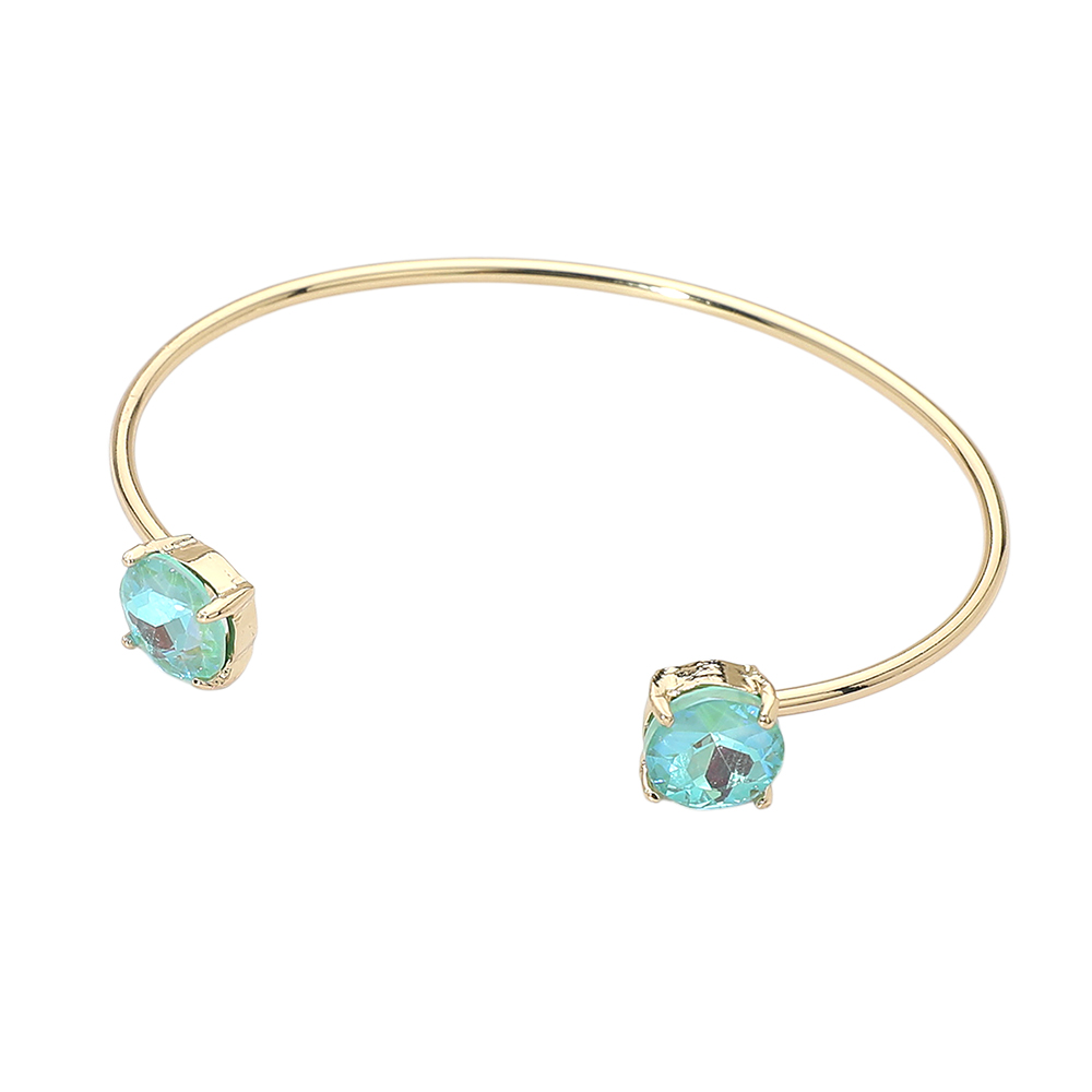 • This double stone open cuff bracelet features a sleek minimalist silhouette accented with two faceted stones for subtle sparkle. Designed for easy slip-on wear, it offers a modern, refined look that works for everyday styling or special occasions, making it a versatile choice for boutique jewelry collections and gift-ready displays.