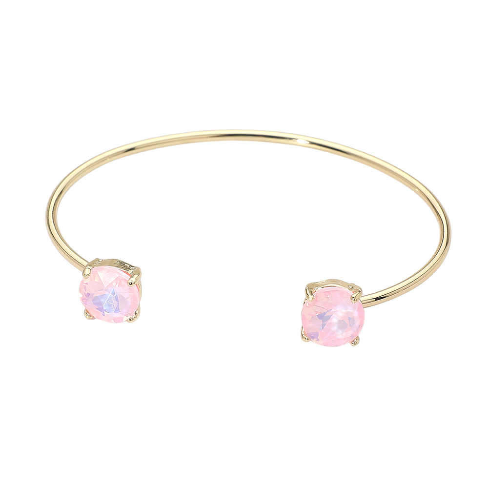 Details • Size : 0.4" H, 2.5" D • Cuff • This double stone open cuff bracelet features a sleek minimalist silhouette accented with two faceted stones for subtle sparkle. Designed for easy slip-on wear, it offers a modern, refined look that works for everyday styling or special occasions, making it a versatile choice for boutique jewelry collections and gift-ready displays. • Lead and Nickel Compliant