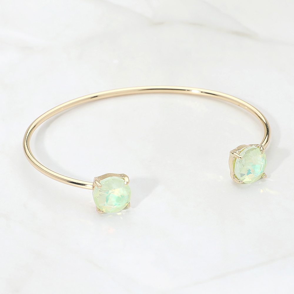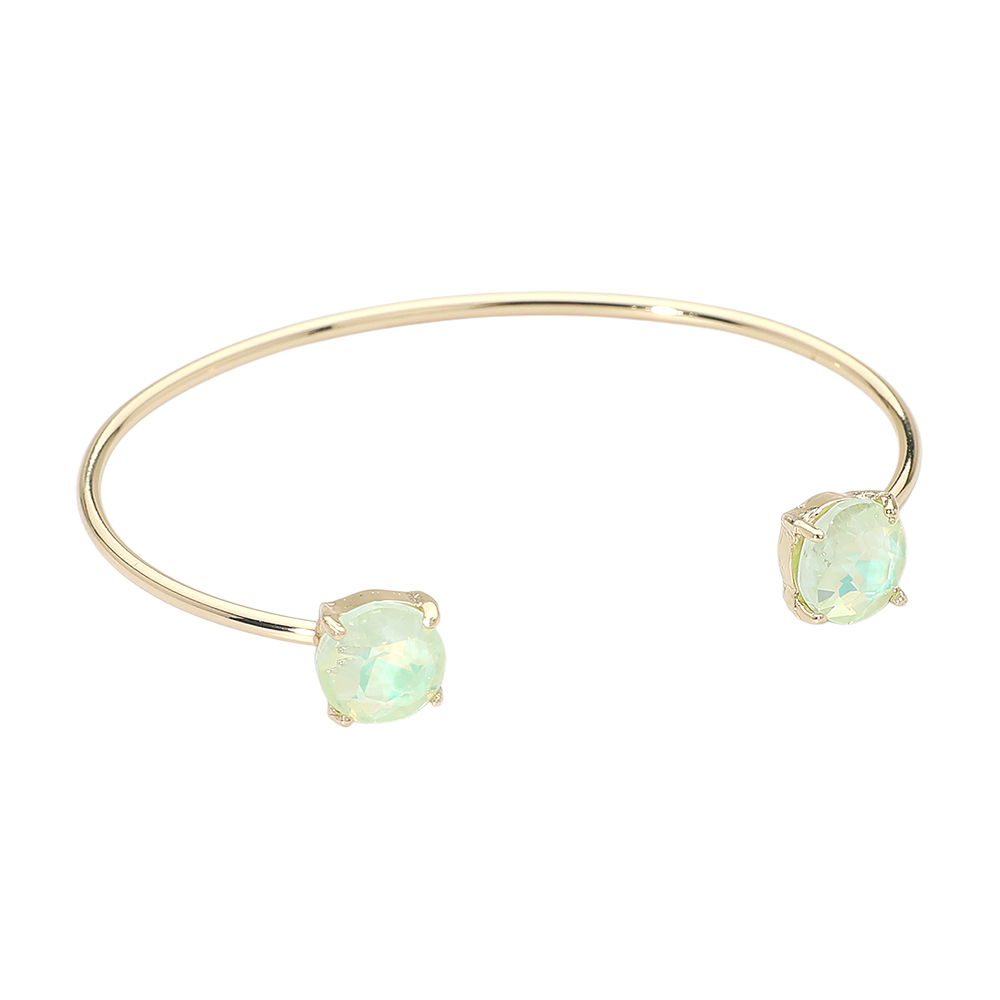 • This double stone open cuff bracelet features a sleek minimalist silhouette accented with two faceted stones for subtle sparkle. Designed for easy slip-on wear, it offers a modern, refined look that works for everyday styling or special occasions, making it a versatile choice for boutique jewelry collections and gift-ready displays.