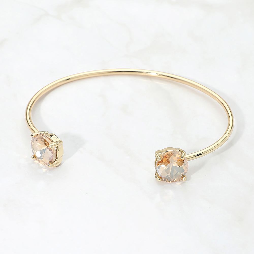 • This double stone open cuff bracelet features a sleek minimalist silhouette accented with two faceted stones for subtle sparkle. Designed for easy slip-on wear, it offers a modern, refined look that works for everyday styling or special occasions, making it a versatile choice for boutique jewelry collections and gift-ready displays.
