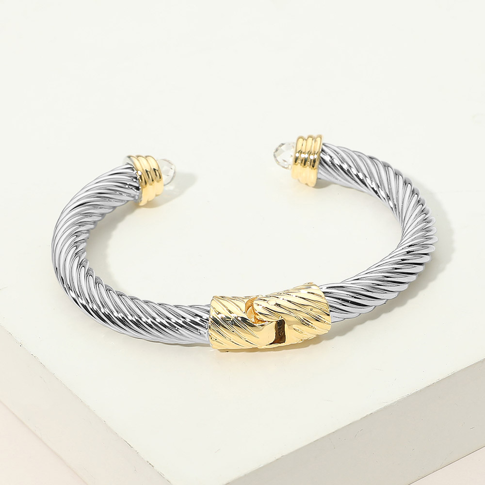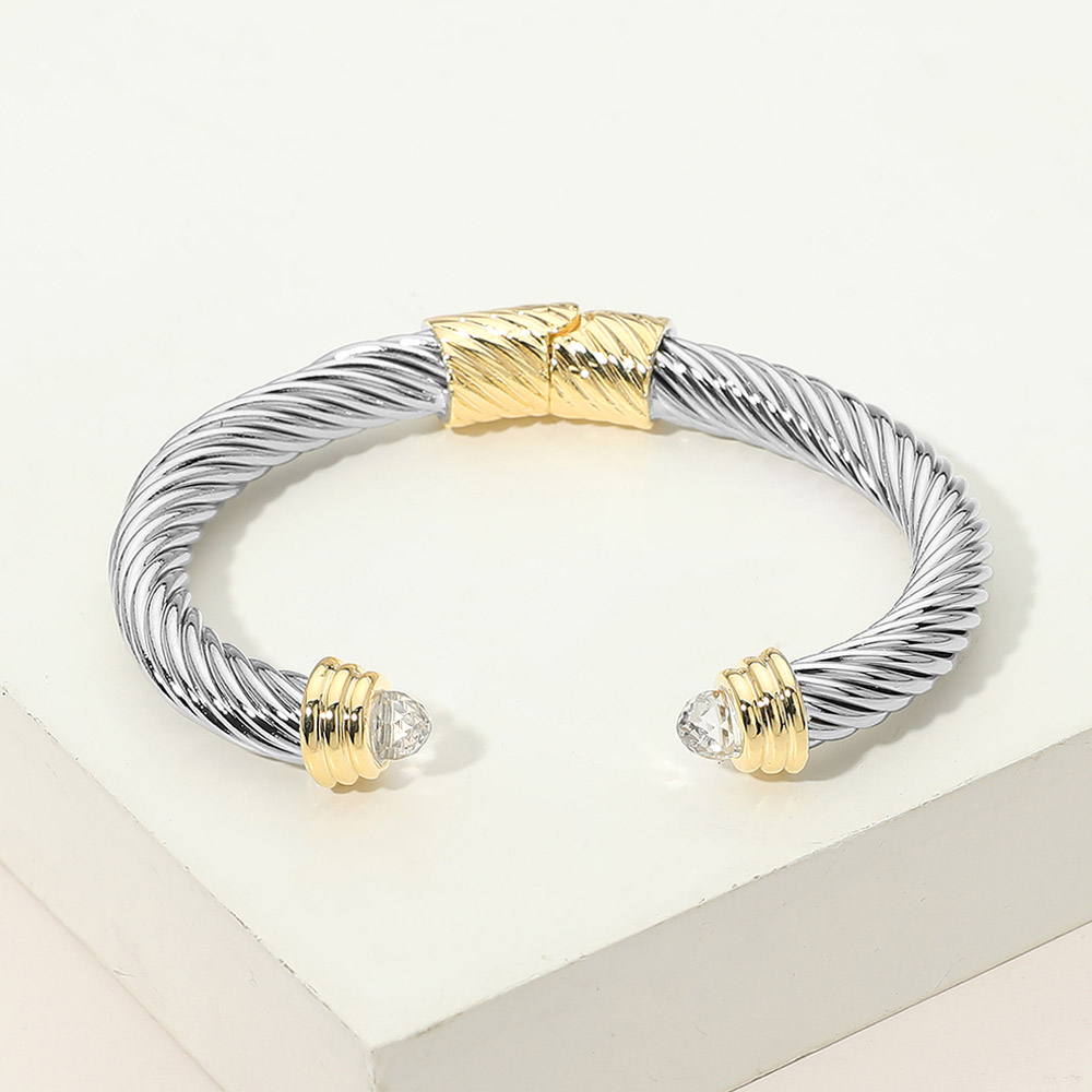 Faceted Stone Tip Twisted Cable Hinged Cuff Bracelet