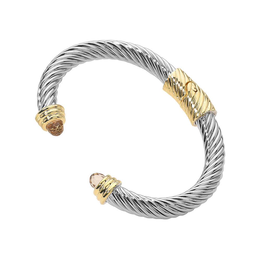 Faceted Stone Tip Twisted Cable Hinged Cuff Bracelet