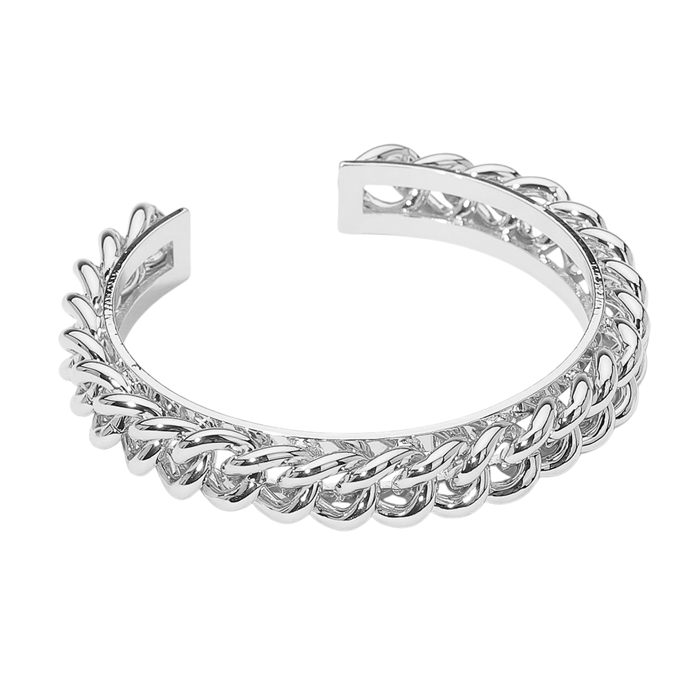 • Stylish open cuff bracelet featuring a bold chain link design, perfect for adding a modern edge to any look. This statement accessory offers a sleek and trendy finish, ideal for stacking or wearing solo for a refined yet impactful style.