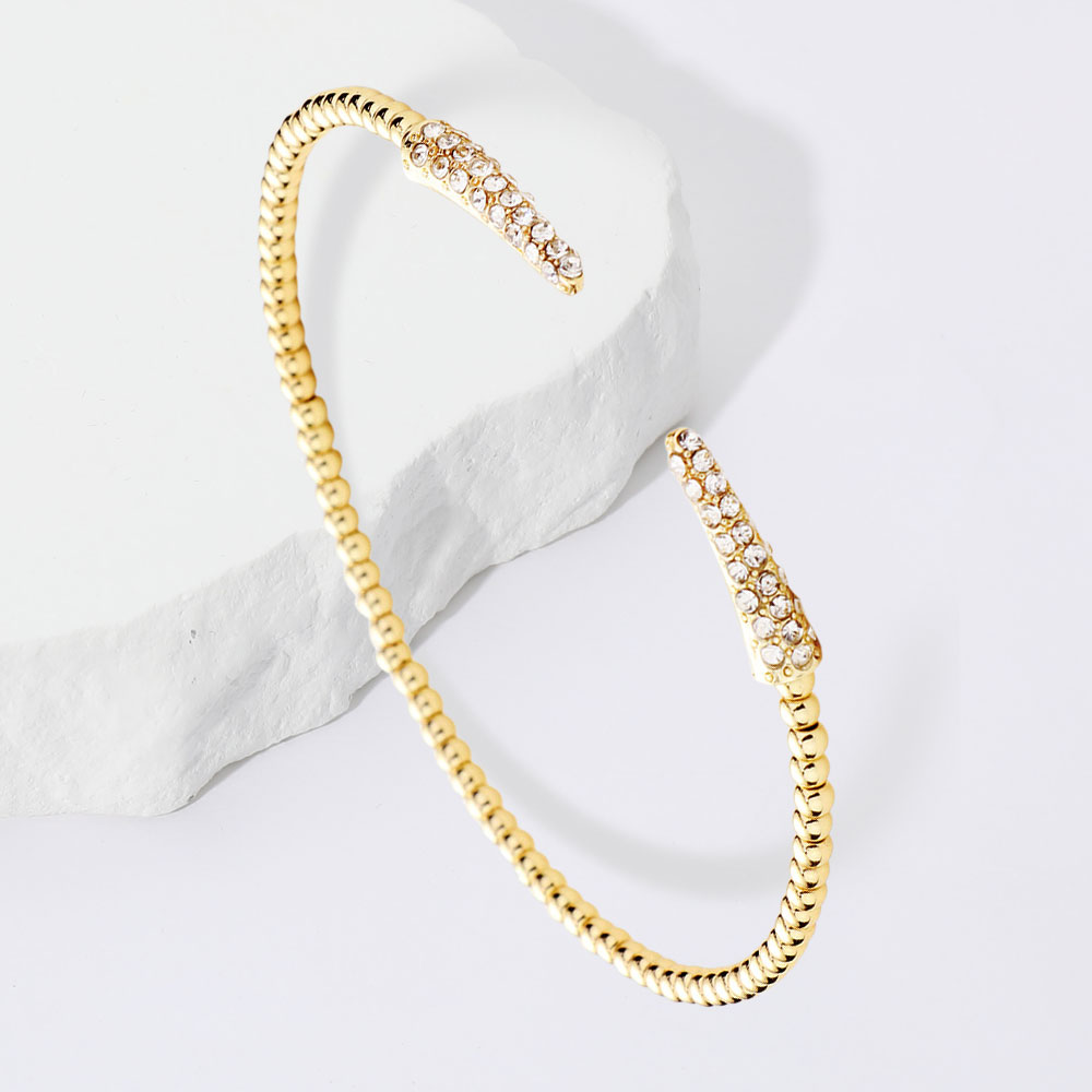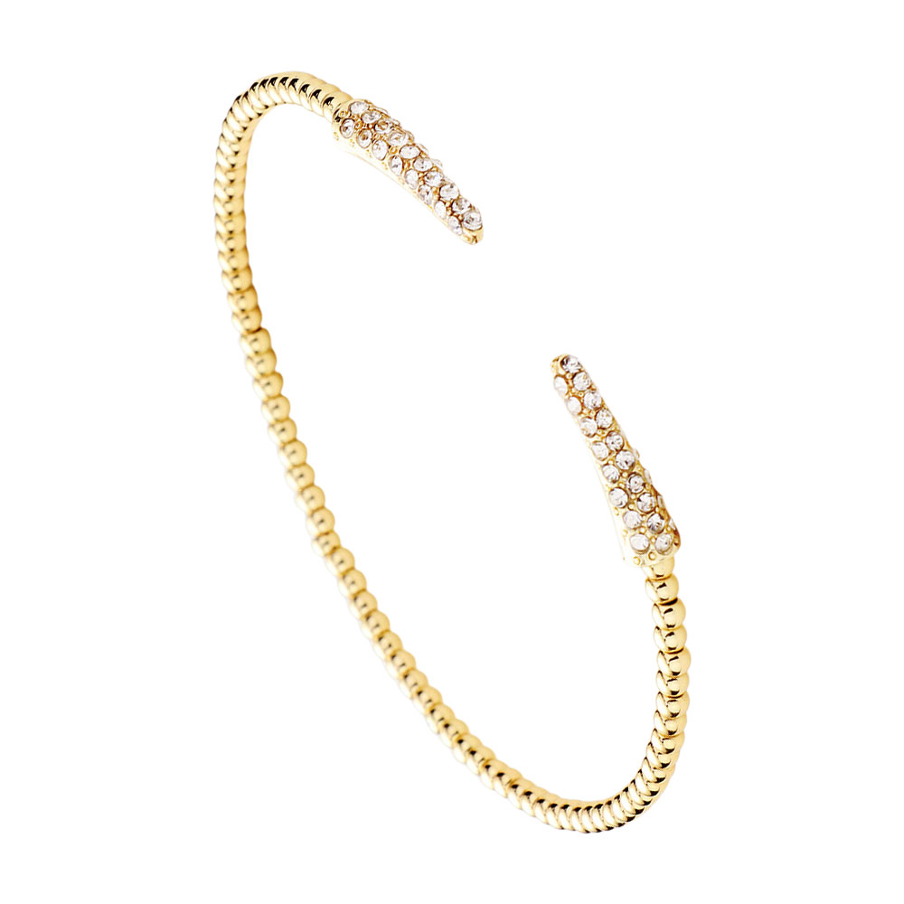 Details • Size : 0.2" H • Cuff • Add subtle sophistication to your look with this open cuff bracelet. Designed with a sleek beaded texture and sparkling tips, it offers timeless style perfect for layering or wearing solo, making it an essential accessory for chic everyday fashion. • Lead and Nickel Compliant