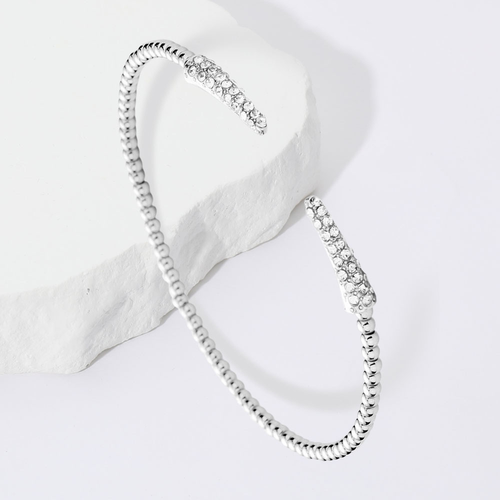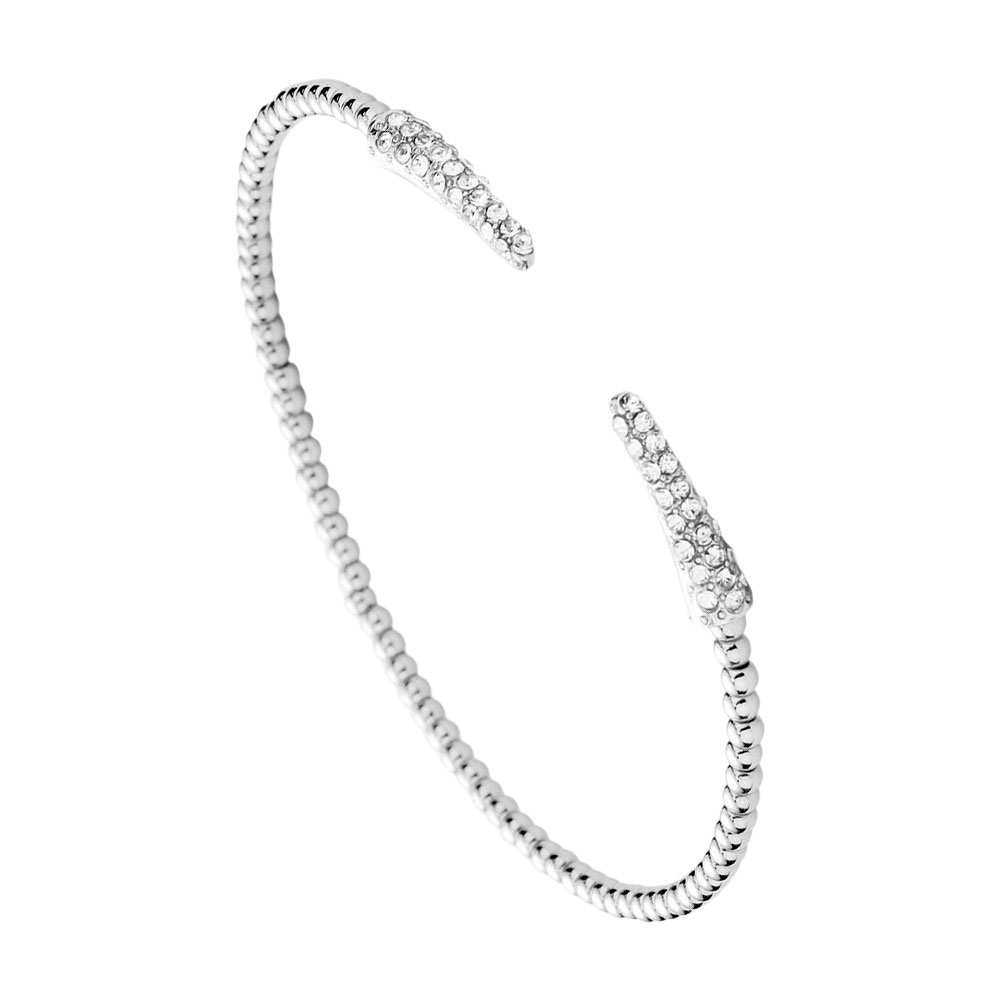 Details • Size : 0.2" H • Cuff • Add subtle sophistication to your look with this open cuff bracelet. Designed with a sleek beaded texture and sparkling tips, it offers timeless style perfect for layering or wearing solo, making it an essential accessory for chic everyday fashion. • Lead and Nickel Compliant