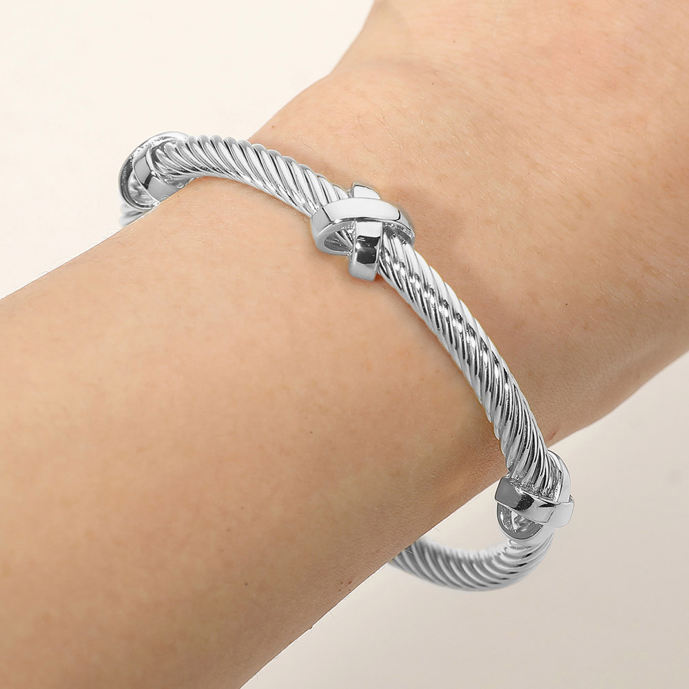 Two Tone Crisscross Accent Twisted Cable Cuff Bracelet