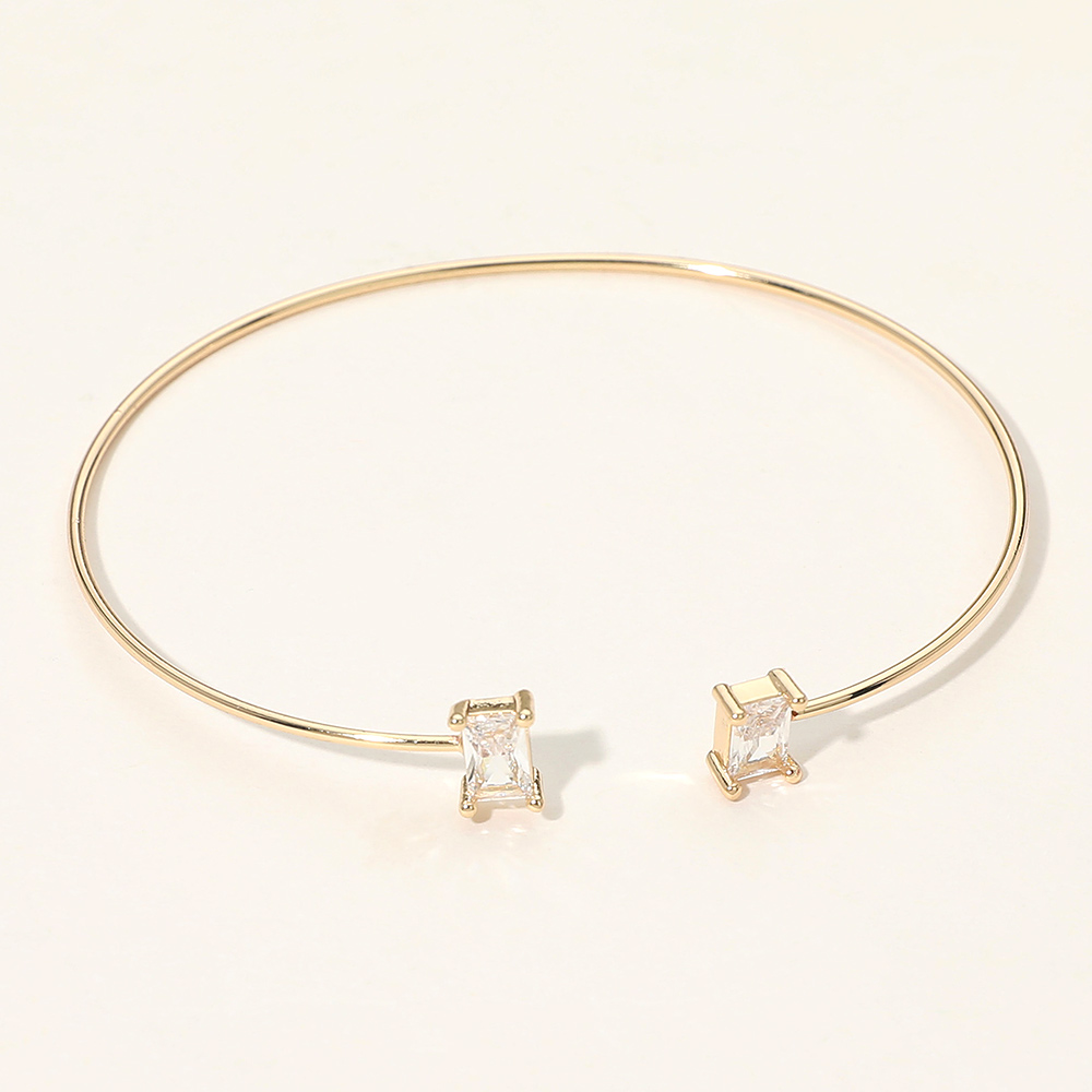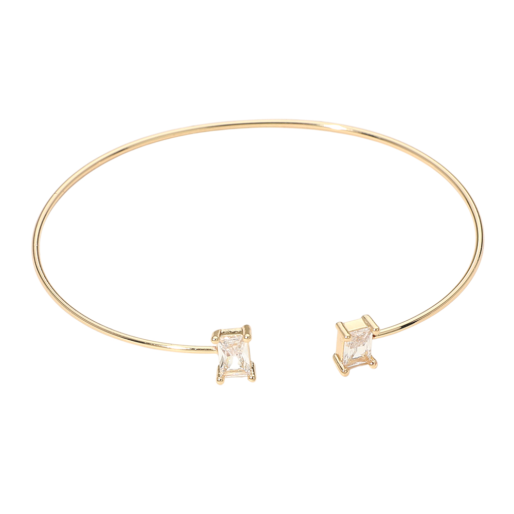 Details • Size : 0.25" H, 2.5" D • Cuff • Sleek open cuff bracelet designed with two refined crystal accents for a clean, modern look. This versatile piece offers comfortable wear and effortless styling, making it ideal for stacking or wearing alone as a subtle statement for everyday outfits or polished occasions. • Brass