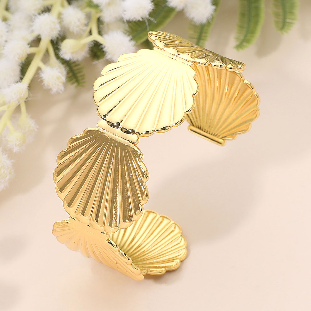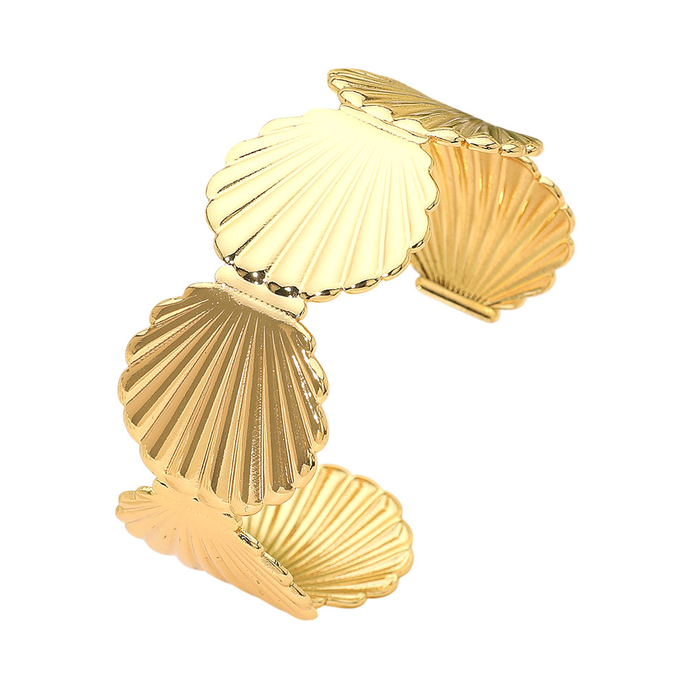 • Sculptural cuff bracelet inspired by layered seashell forms for a bold coastal statement. Designed to add elegant texture and eye-catching dimension to everyday outfits or resort-ready looks, this standout bracelet is perfect worn solo or stacked for effortless seaside style.