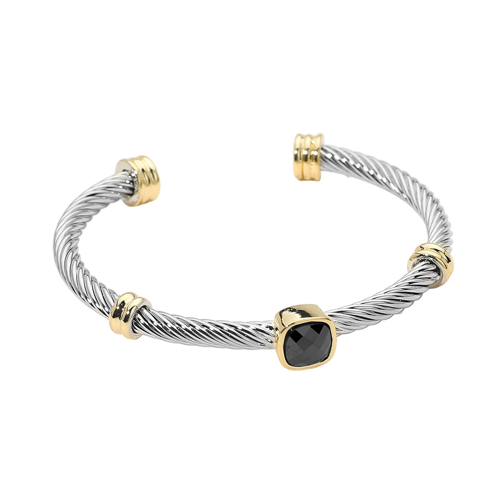 Square Stone Bezel Accent Two Tone Twisted Cable Cuff Bracelet Square Stone Bezel Accent Two Tone Twisted Cable Cuff Bracelet Square Stone Bezel Accent Two Tone Twisted Cable Cuff Bracelet