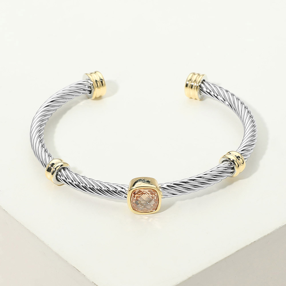 Square Stone Bezel Accent Two Tone Twisted Cable Cuff Bracelet Square Stone Bezel Accent Two Tone Twisted Cable Cuff Bracelet Square Stone Bezel Accent Two Tone Twisted Cable Cuff Bracelet