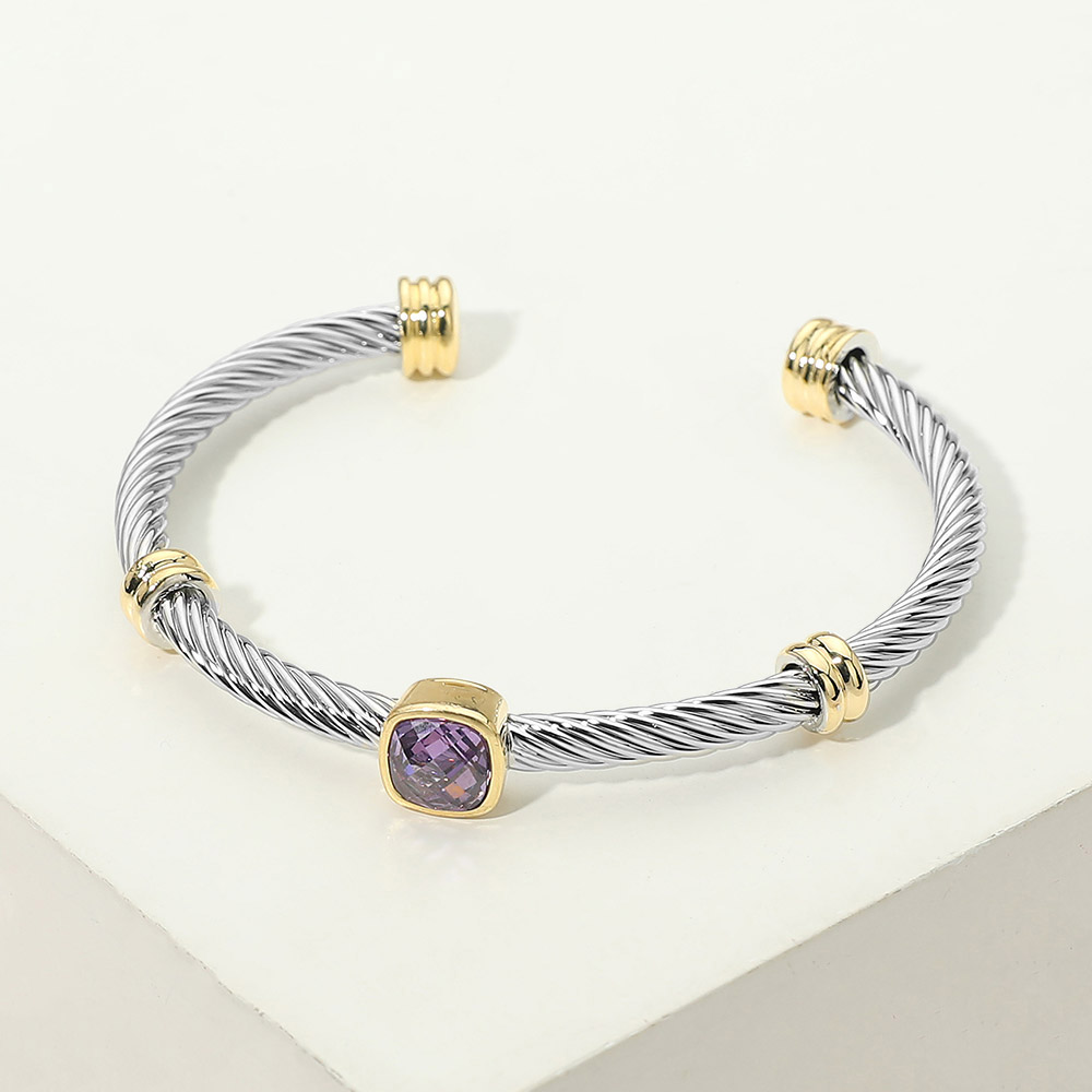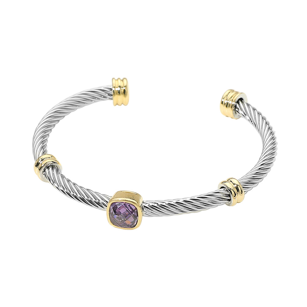 Square Stone Bezel Accent Two Tone Twisted Cable Cuff Bracelet