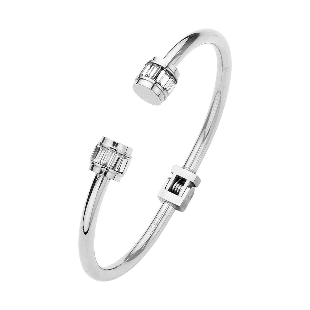 Stainless Steel Baguette Stone Nail Head Tip Hinged Cuff Bracelet