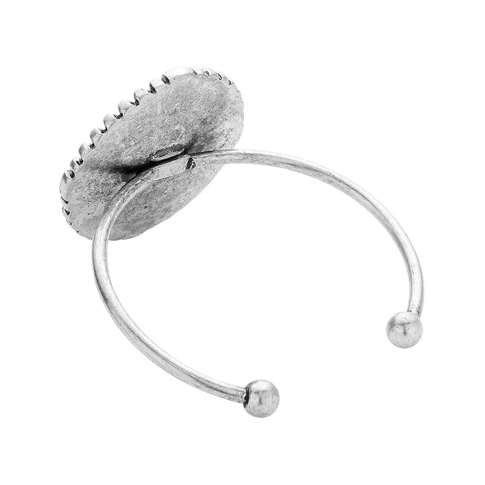Bold Square Stone Centered Two Tone Metal Sud Earrings