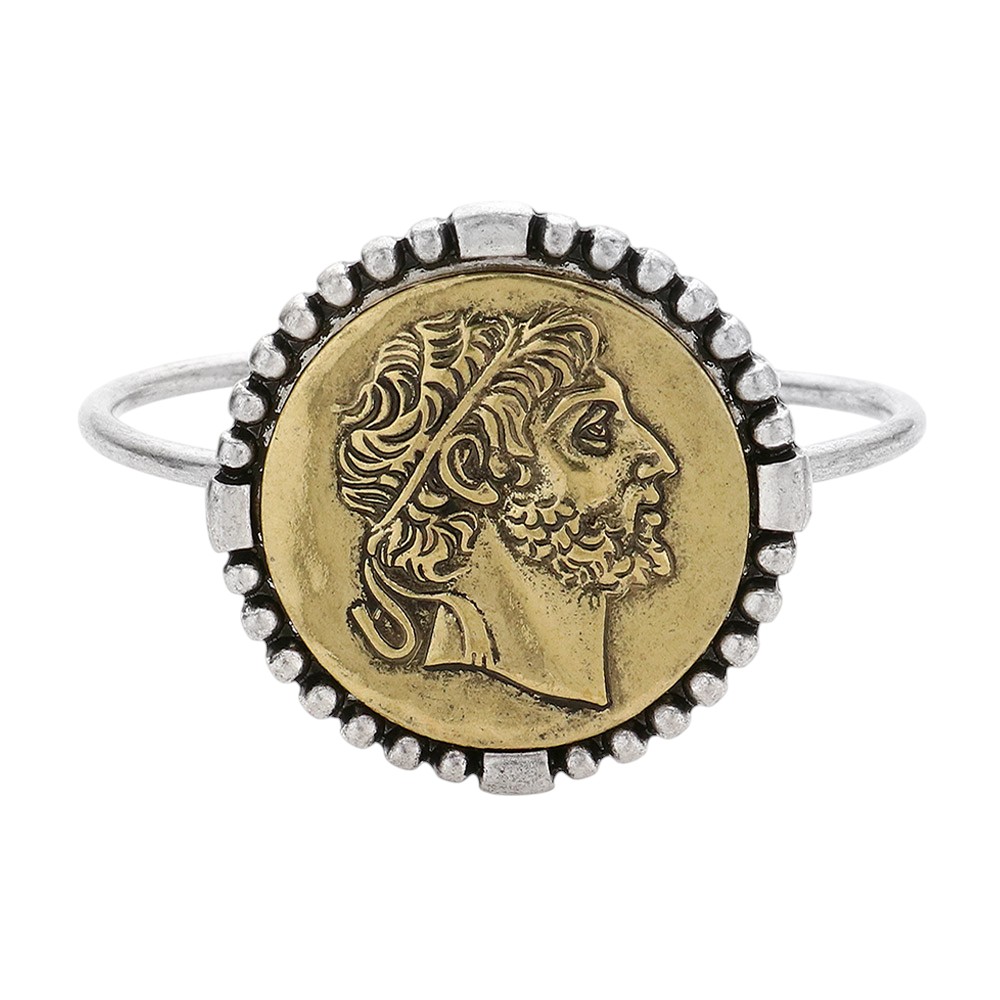 Two Tone CZ Stone Paved Tip Textured Cuff Bracelet