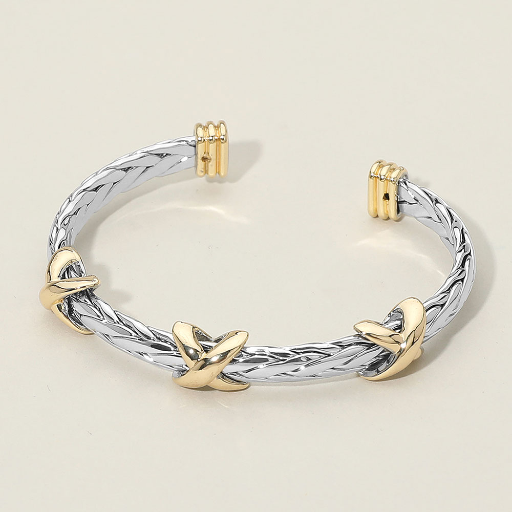 Details • Size : 0.3" H, 2.3" D • Cuff • Stylish open cuff bracelet featuring a twisted band design accented with elegant knot details. This refined piece offers a modern yet timeless look, making it easy to style with casual or elevated outfits. A versatile accessory ideal for gifting, layering, or adding polished appeal to curated jewelry collections.