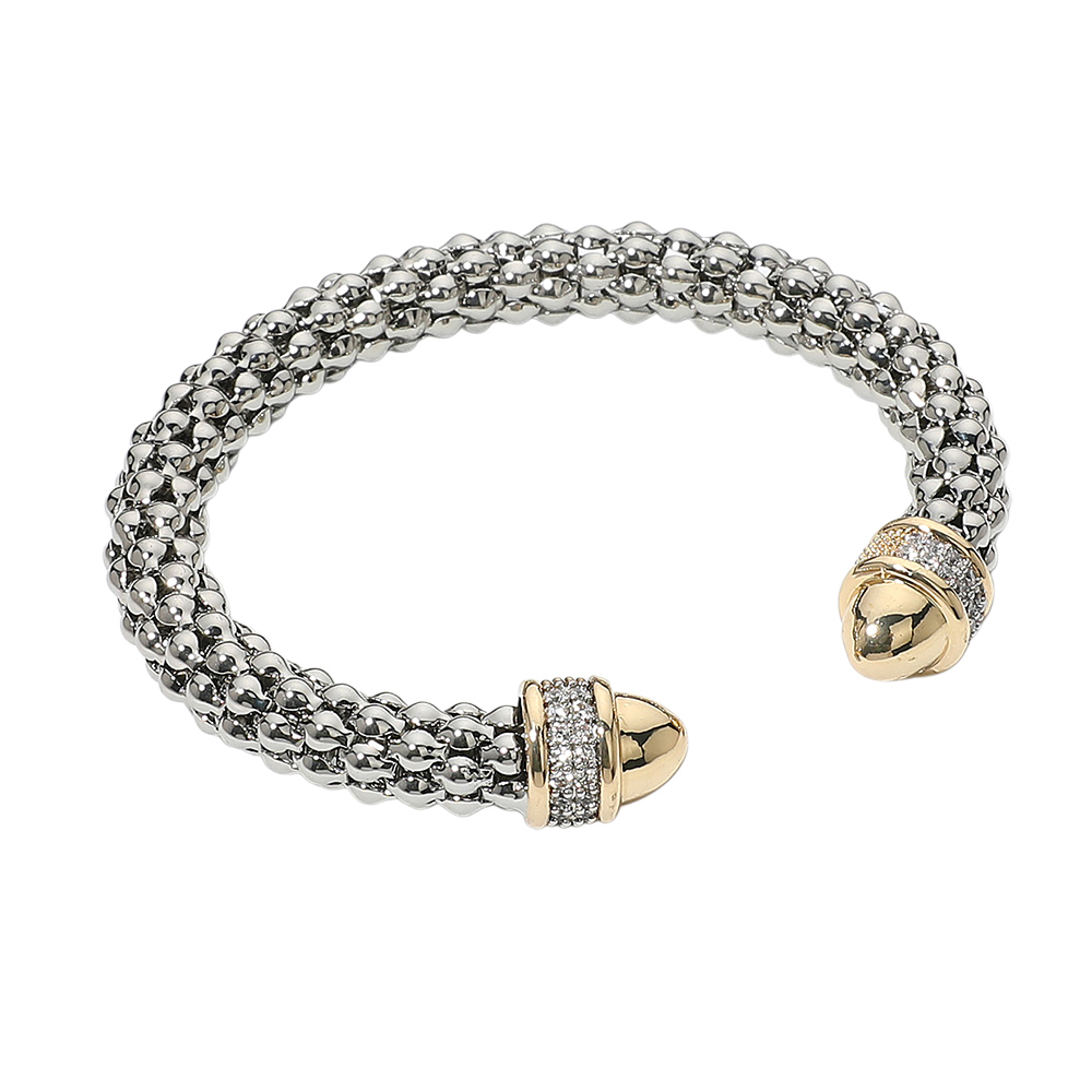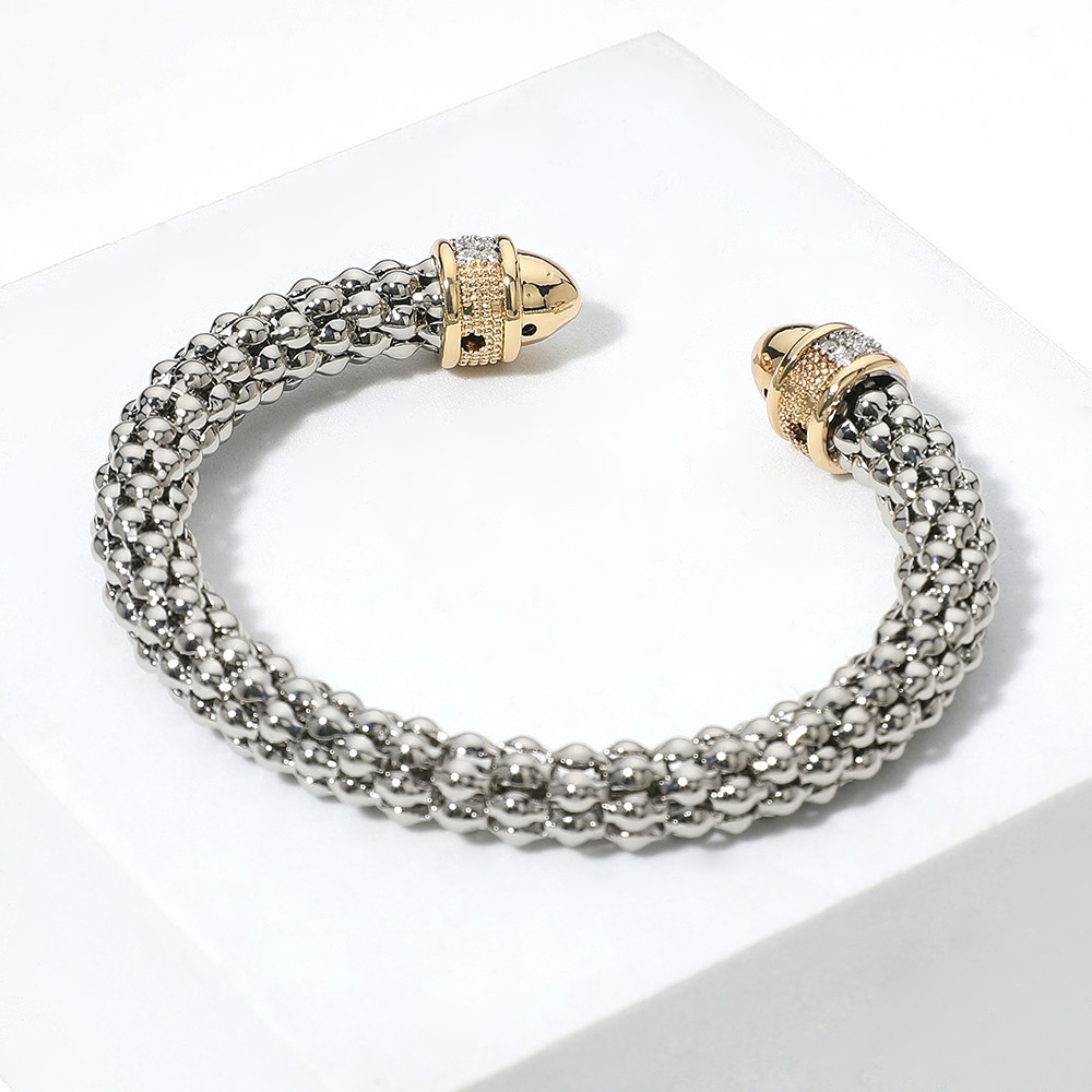 Details • Size : 0.4" H, 2.2" D • Cuff • Enhance any look with this sophisticated open-end bracelet featuring a bold braided design and sparkling crystal accents. Its sleek, hinged style provides effortless wear and a refined finish, making it a versatile statement piece for both everyday and special occasions. • CZ Cubic Zirconia
