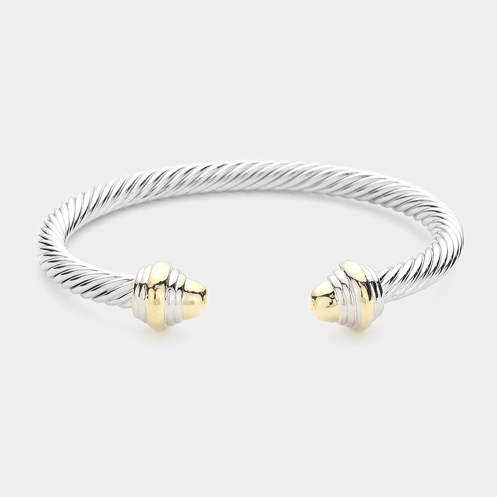 Two Tone Textured Cable Metal Cuff Bracelet