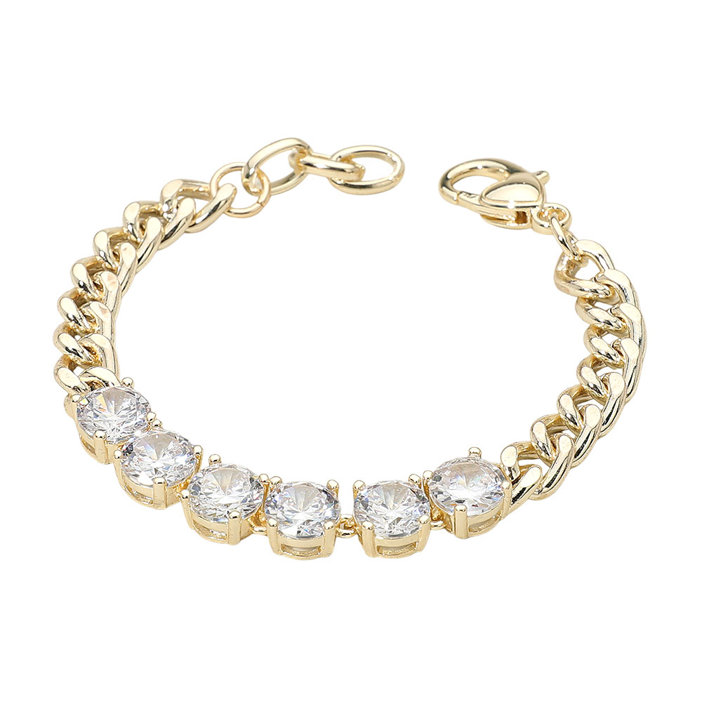 14K Gold Plated CZ Round Stone Cluster Link Chain Bracelet