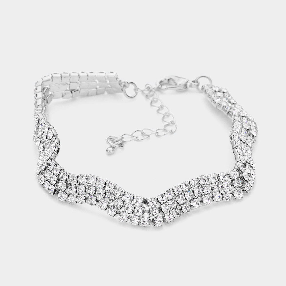 Stainless Steel Stone Paved Safety Pin Charm Pointed Stretch Bracelet