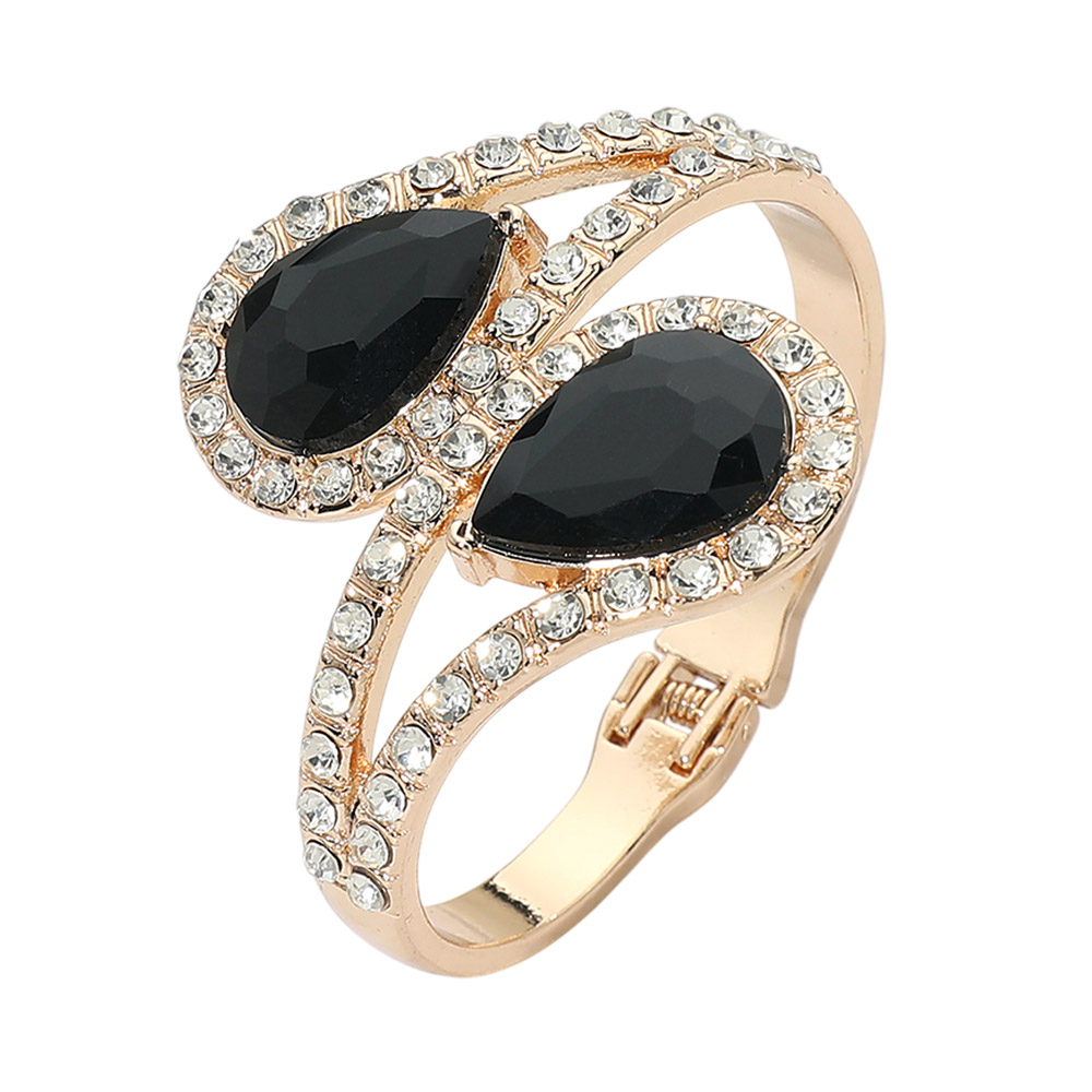 Bold Double Teardrop Tip Wrap Hinged Bangle Evening Bracelet