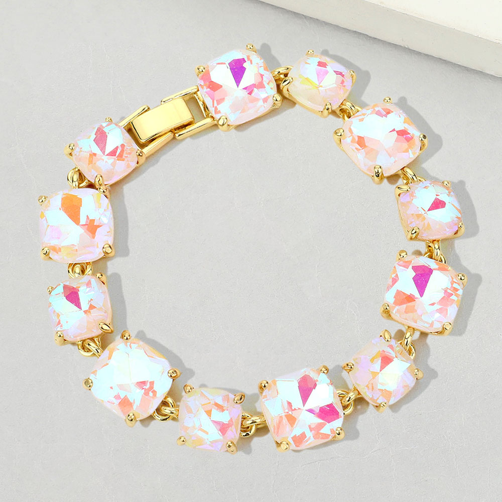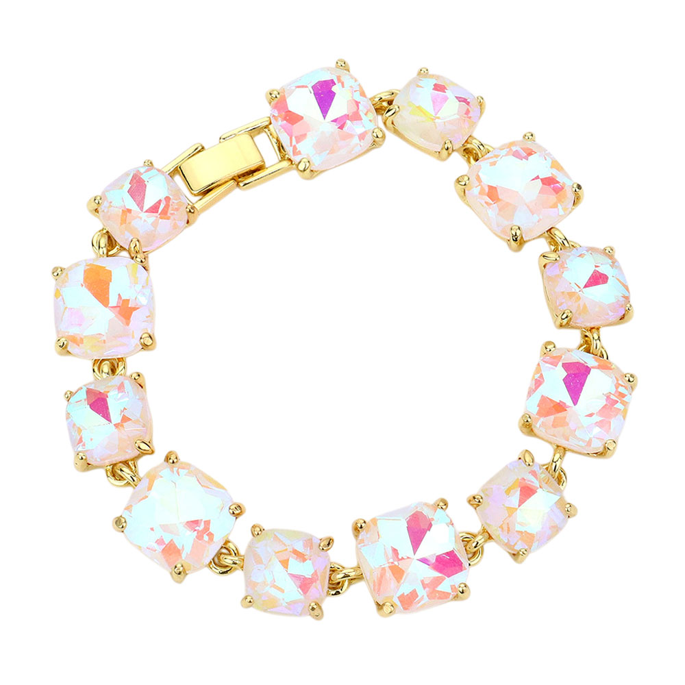 Details • Size : 0.5" H, 7.5" L • Fold Over Closure • Elegant bracelet featuring sparkling square-cut crystals with a vivid, reflective finish. Ideal for parties, weddings, or adding brilliance to formal looks. A radiant accessory that commands attention. • Lead and Nickel Compliant