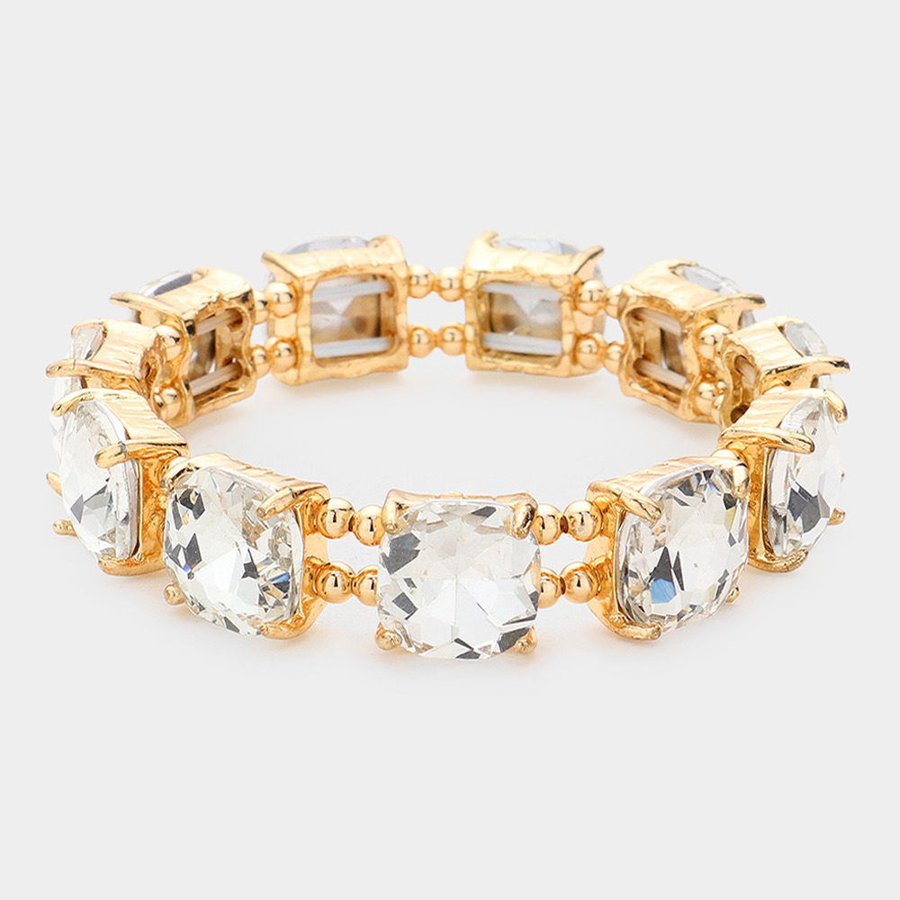 Cushion Square Stone Stretch Evening Bracelet Cushion Square Stone Stretch Evening Bracelet