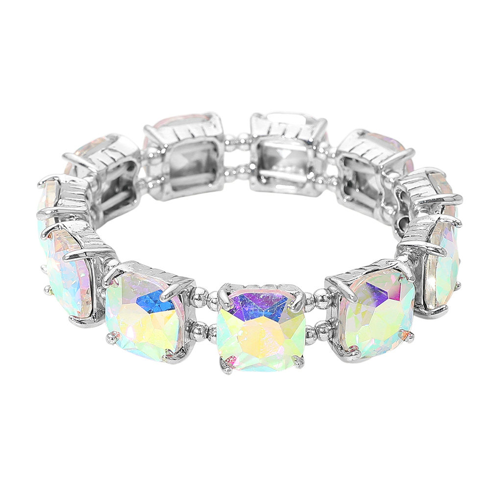 American USA Cushion Square Stone Stretch Evening Bracelet